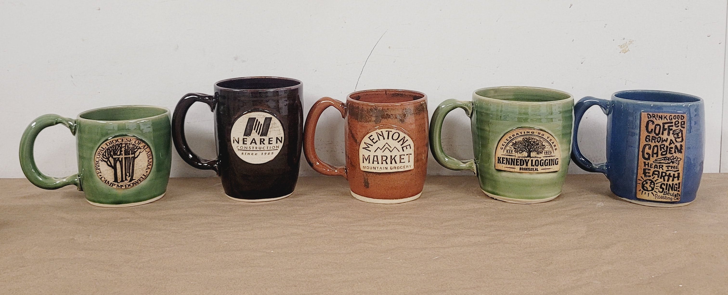 We can work with your existing logo or fashion a new design that fits your needs. Every order is produced with consistency in mind, making our mugs well-suited for bulk orders while still retaining the character of handmade pottery.