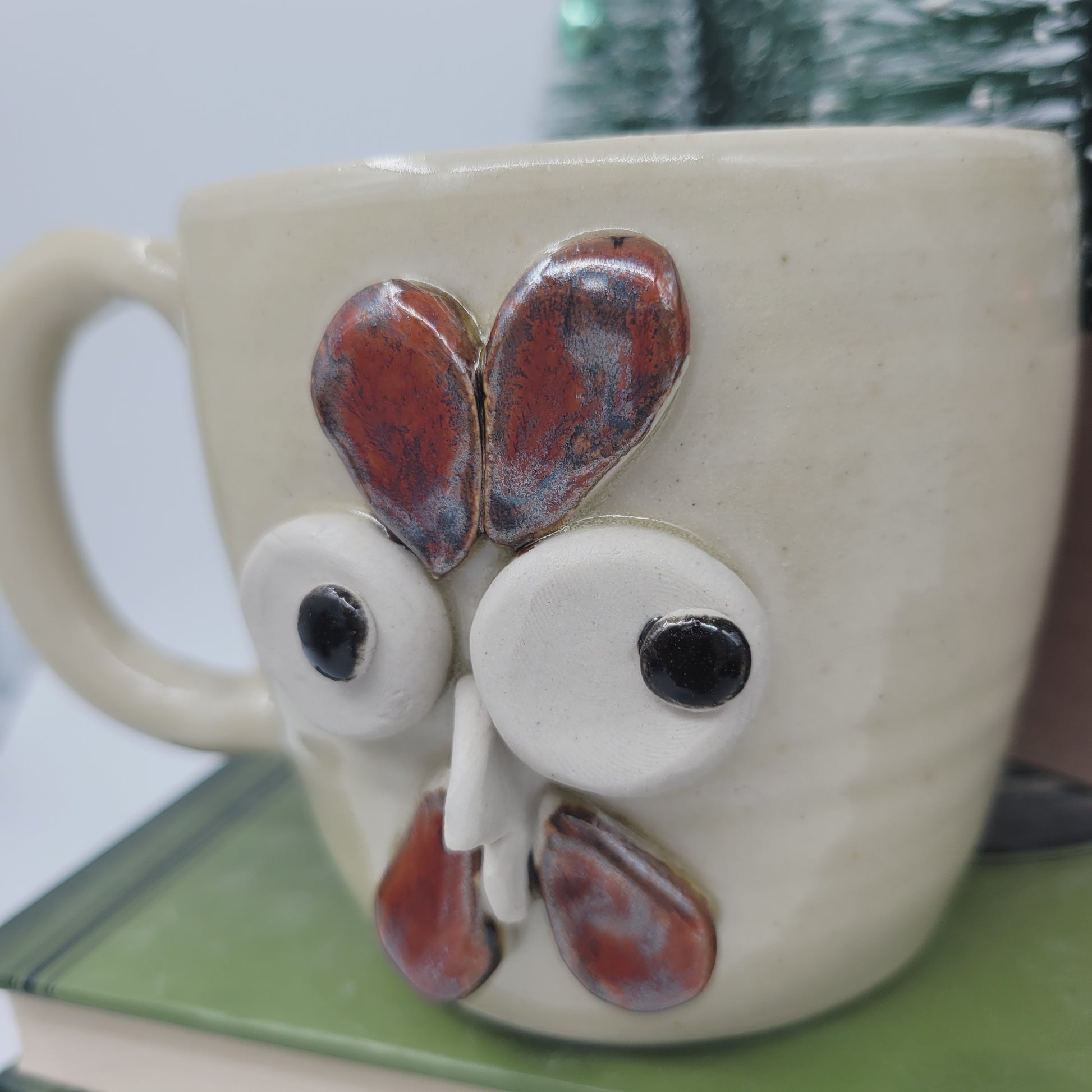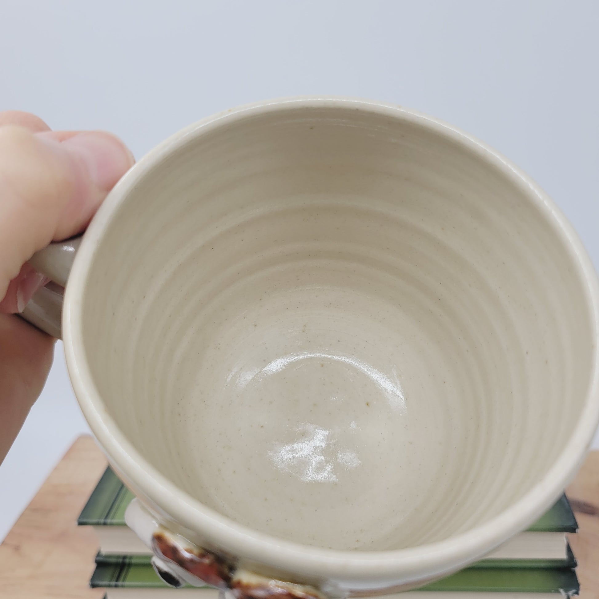 If you can relate, then Henrietta is the mug for you. She is a one of a kind piece, completely handmade from cone 10 stoneware. She was first thrown on the pottery wheel, and then her eyes and features were made and added by hand. She is very durable and is even safe to use in the MICROWAVE and DISHWASHER. She is an Ug-Chug Mug, so she's stamped with the Ug Chug logo and her year.