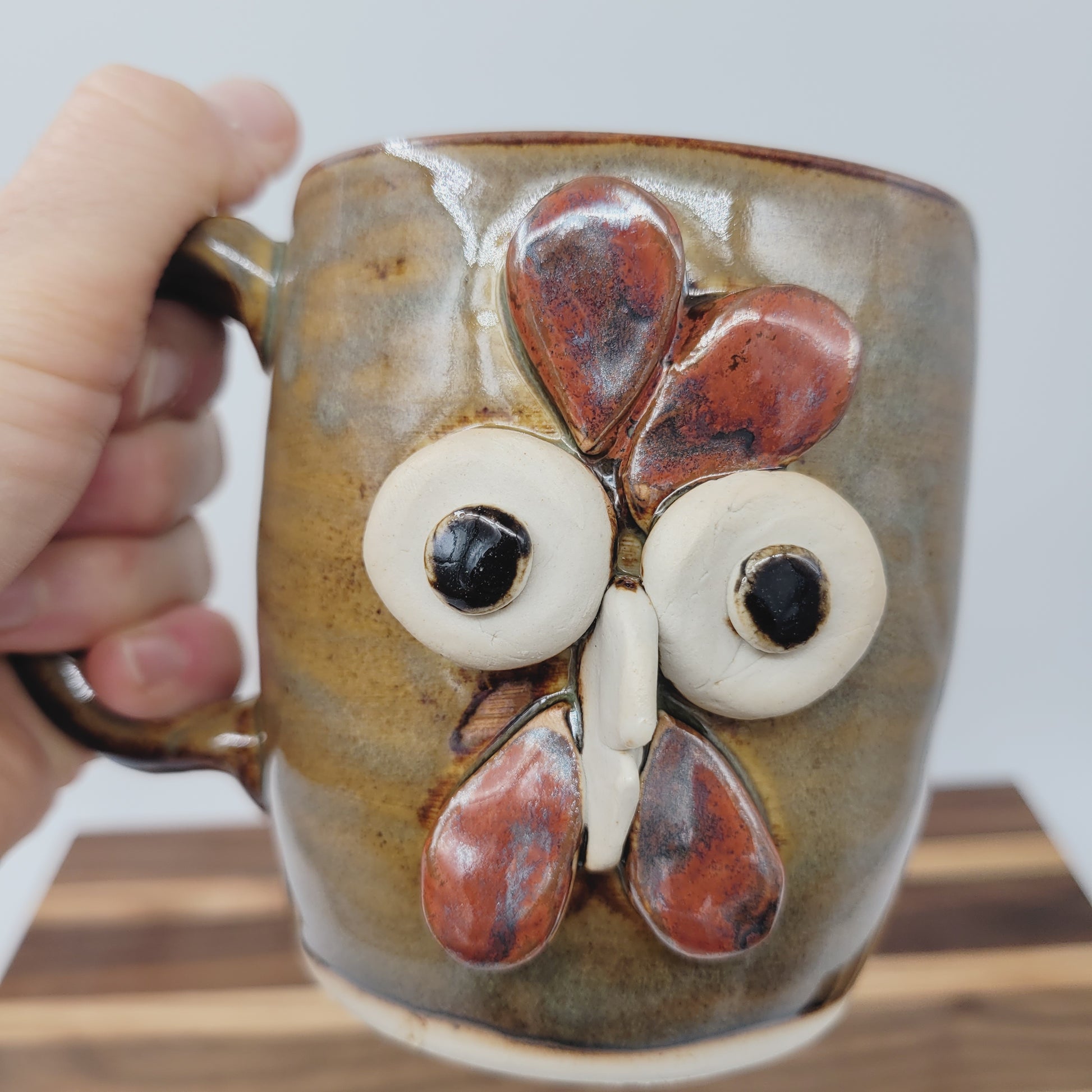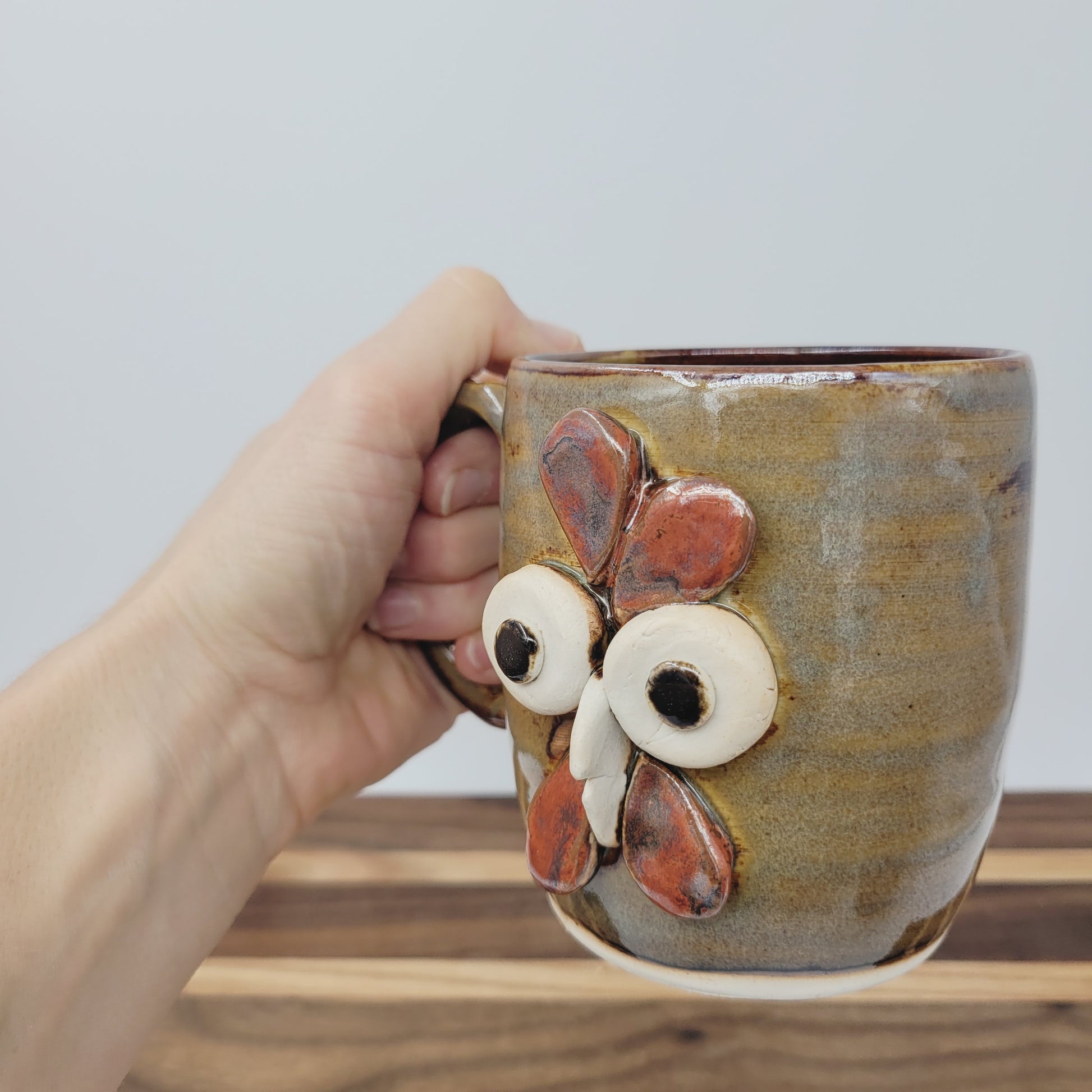 Ug Chug Chicken Coffee Cup | Handmade Farmyard Animal Face Mug | Microwave Dishwasher Safe Stoneware Pottery | Caramel