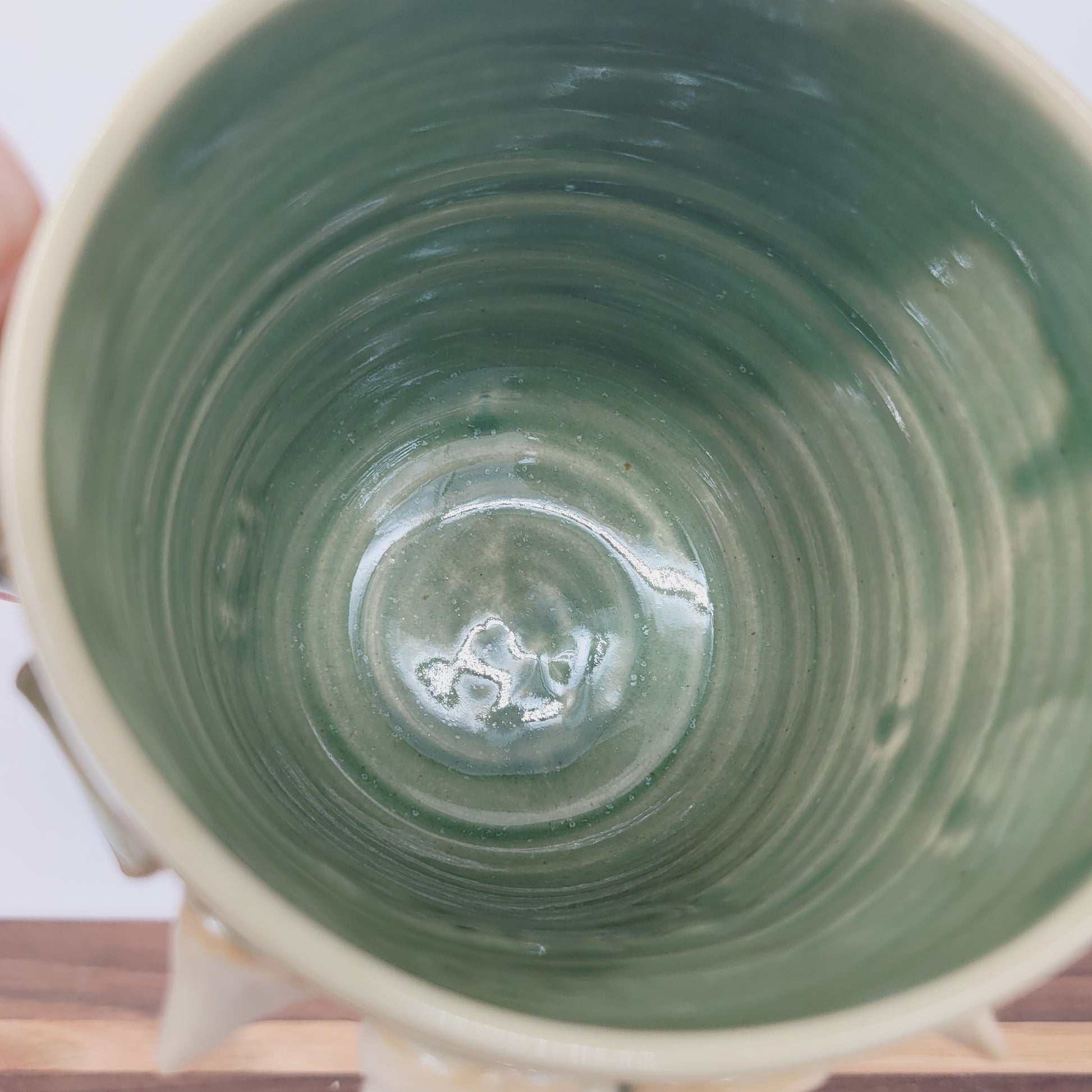 Wayne also loves to serve beverages. He is made from cone 10 stoneware, so he's very durable and is even microwave and dishwasher safe (with care). Wayne is an Ug-Chug Mug, so he's stamped with the Ug-Chug logo and his year.