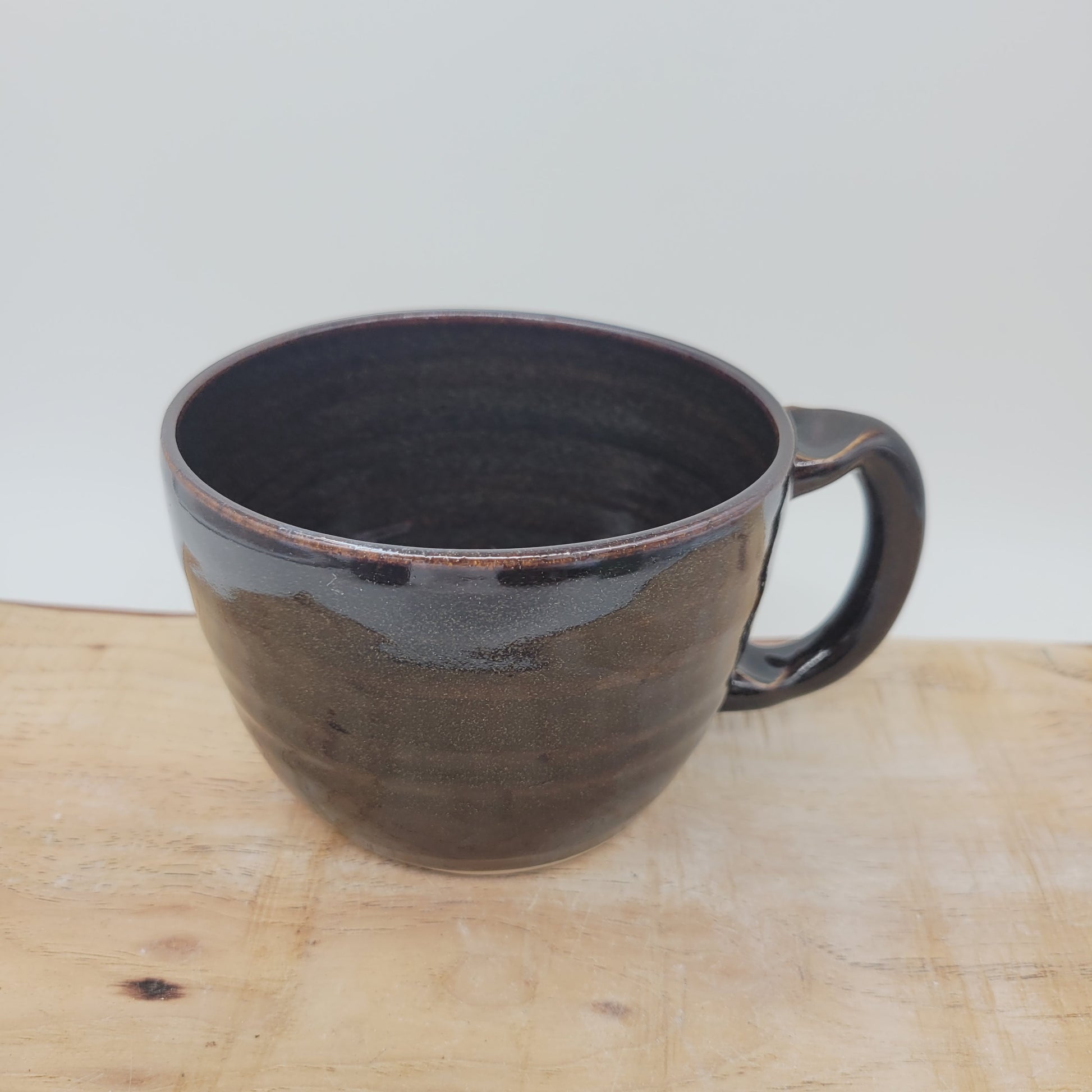 PJ Pugglesworth is also an excellent holder of soups, stews, and chilis. He's made from cone 10 stoneware, so he's very durable and is even safe to use in the microwave and dishwasher. He is finished with a food-safe glaze in chocolate black. PJ Pugglesworth is an Ug-Chug Mug, so he's stamped with the Ug-Chug logo and his year.