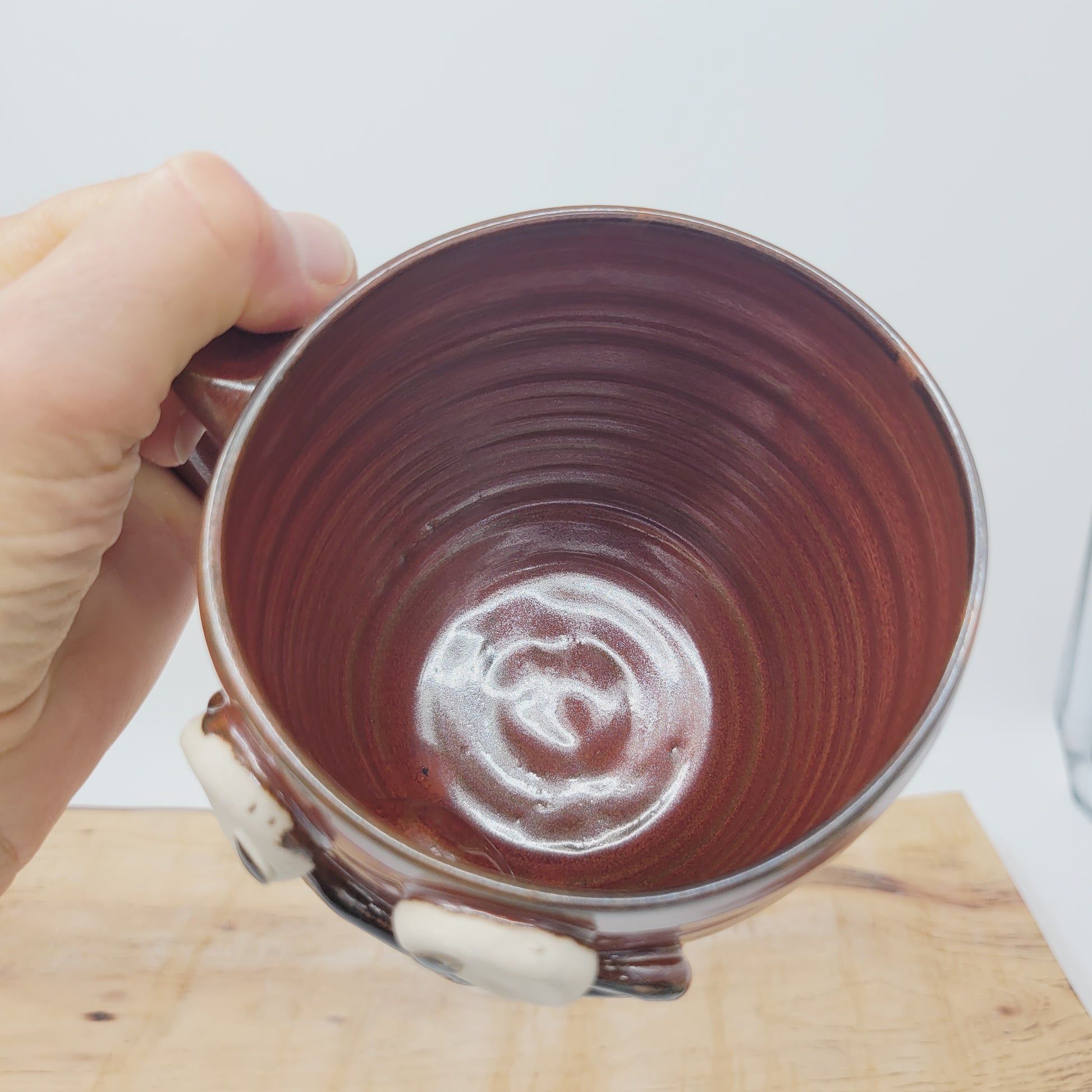 Todd was first thrown on the pottery wheel, and his features were made and added by hand. He is made from stoneware and high-fired for durability. He is microwave and dishwasher safe. Todd is an Ug-Chug Mug, so he's stamped with the Ug-Chug logo and his year.