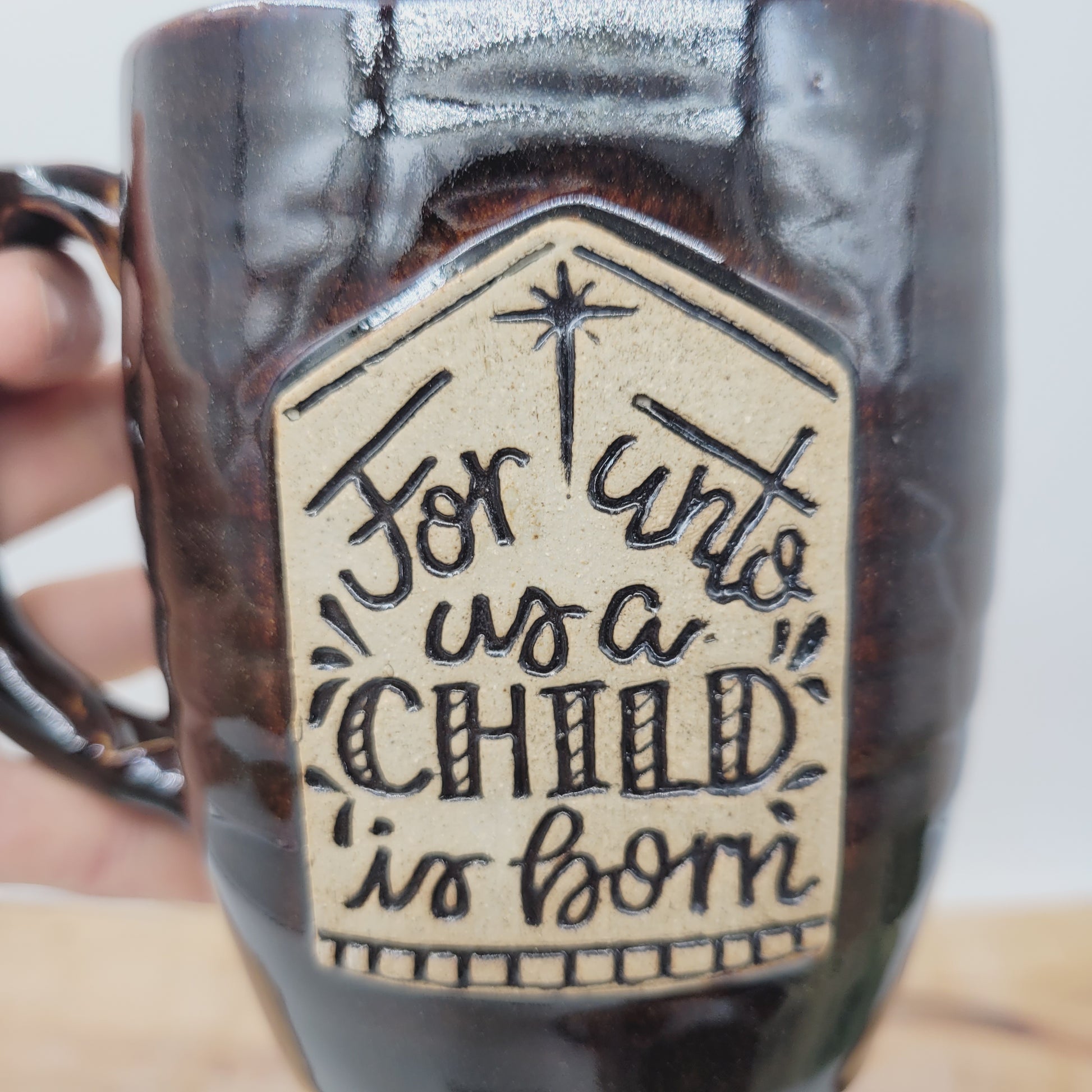 For Unto Us A Child Is Born | Christmas Coffee Cup | Christian Gifts | Christmastime Mugs | Black