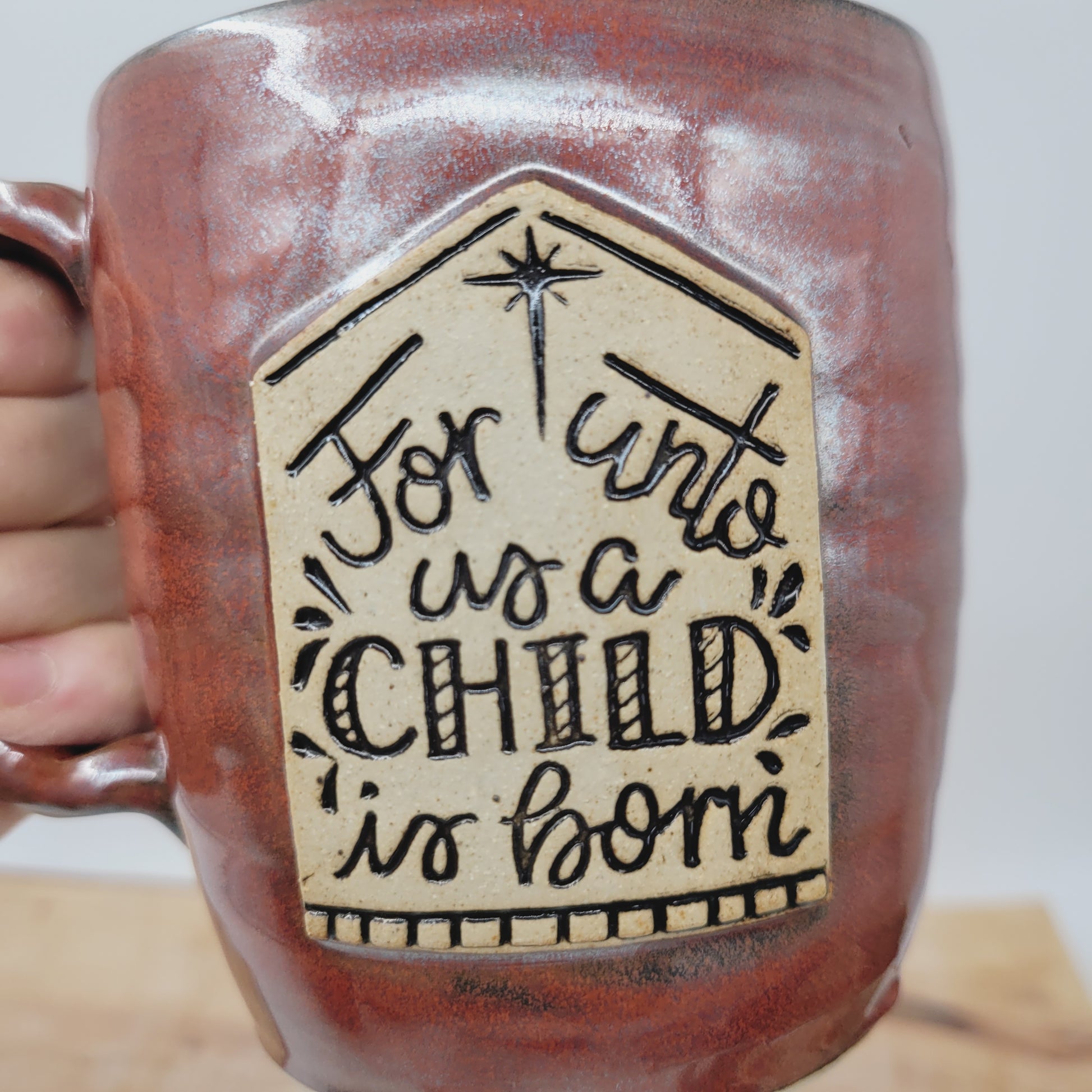 For Unto Us A Child Is Born | Christmas Coffee Cup | Christian Gifts | Christmastime Mugs | Cinnamon Red