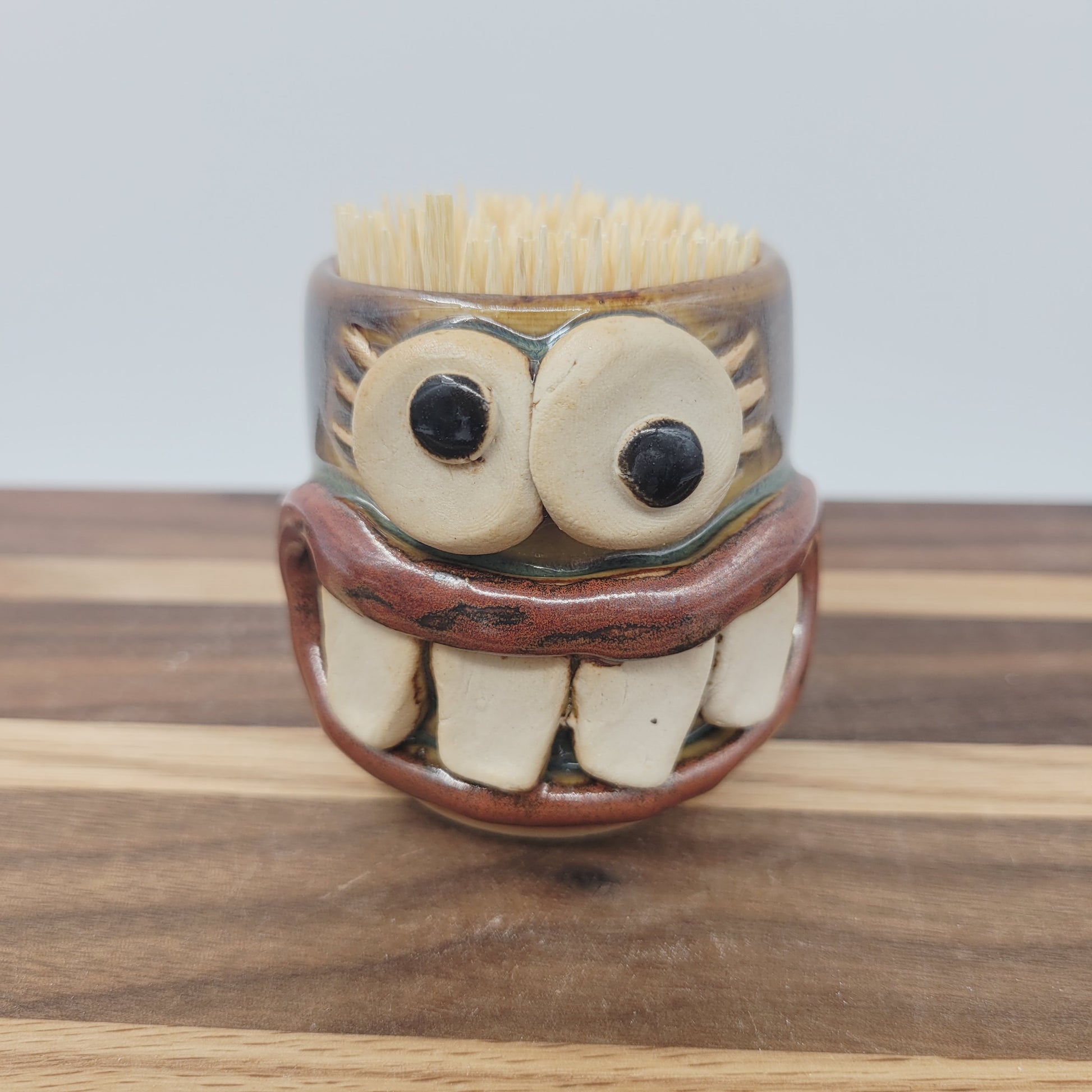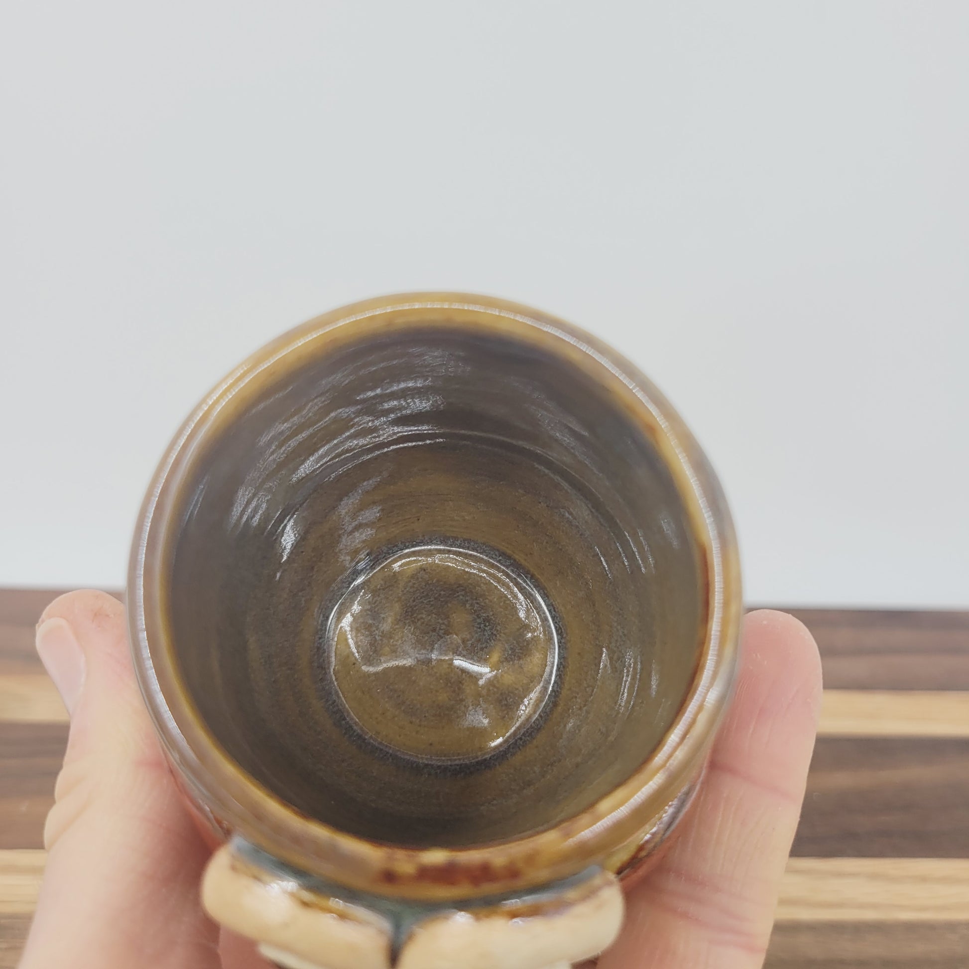 Meet your new pint-sized companion with a permanent smile! This charming handmade stoneware mini cup is as versatile as it is delightful. Wrangle toothpicks, organize office supplies, showcase miniature treasures, or serve up a quick drink—this cheerful little character does it all.