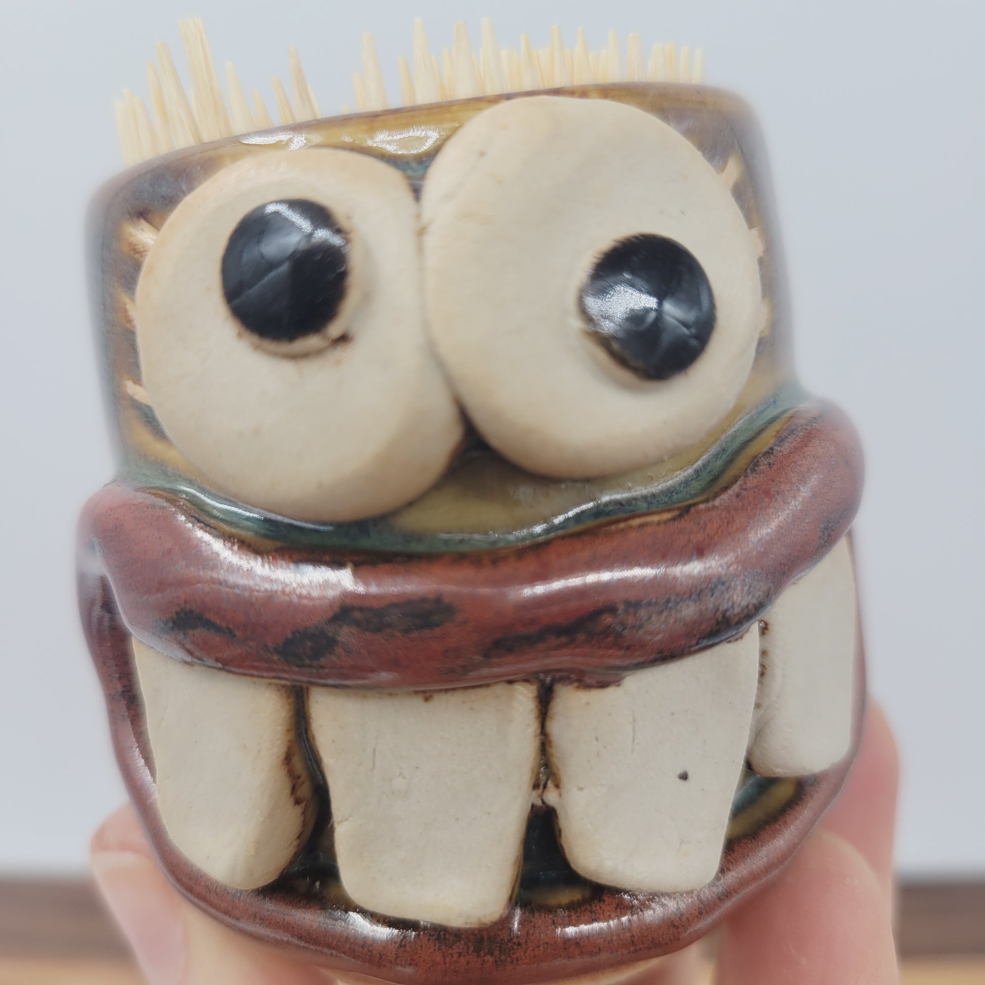 Handmade Stoneware Toothpick Holder | Rusty Brown | Funny Baking Accessory