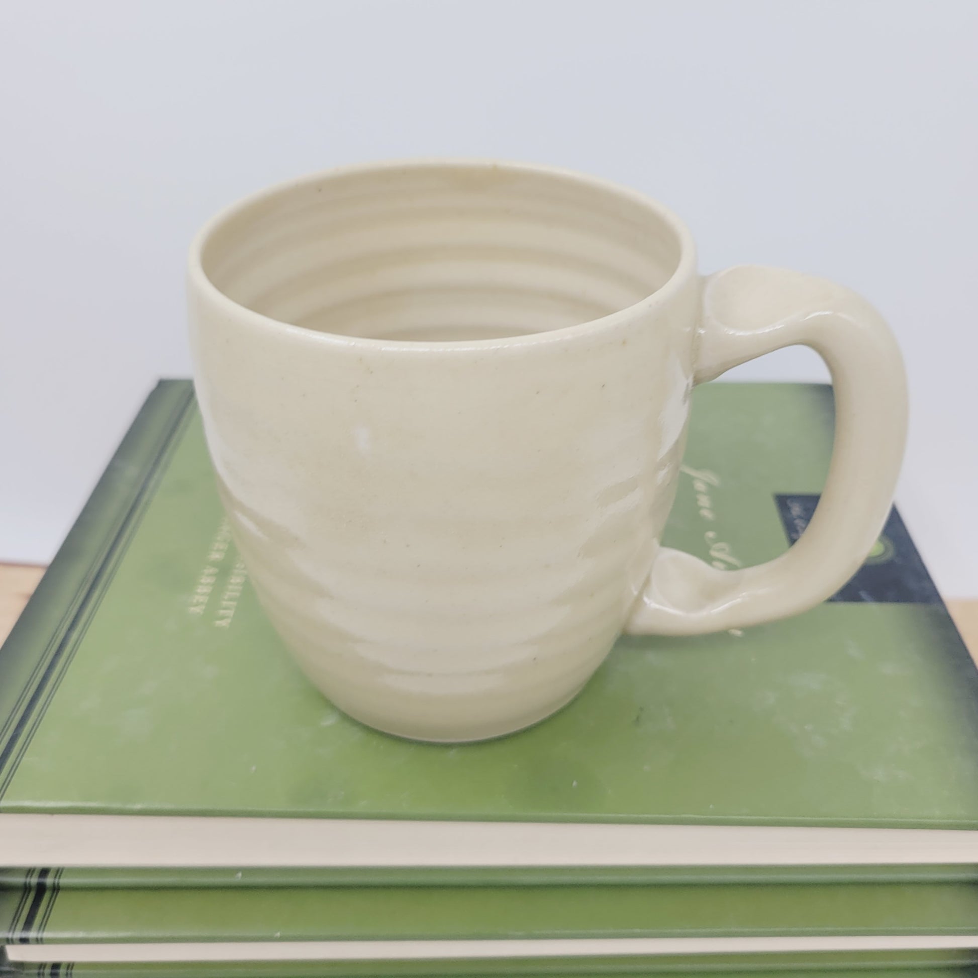 Aside from dad-bod battling, Frank's main hobby is beverage holding, and he is great at it! He was first thrown on the pottery wheel and his eyes and features were made and added by hand. He's made from cone 10 stoneware, so he's very durable and is even safe to use in the microwave and dishwasher. Frank is an Ug-Chug Mug, so he's stamped with the Ug-Chug logo and his year.