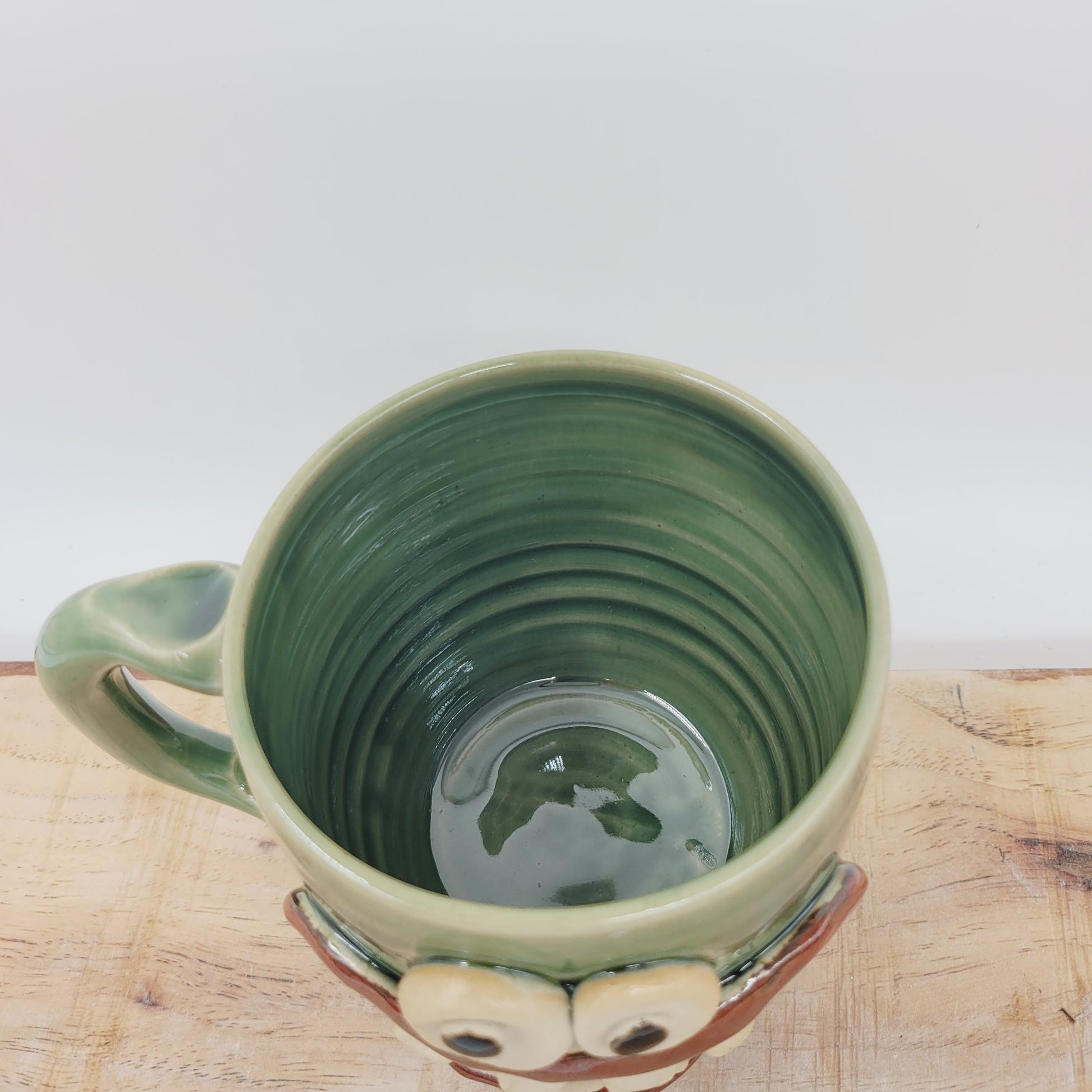 Green Smiley Face Coffee Cup | 16 Ounces | Handmade Stoneware Pottery