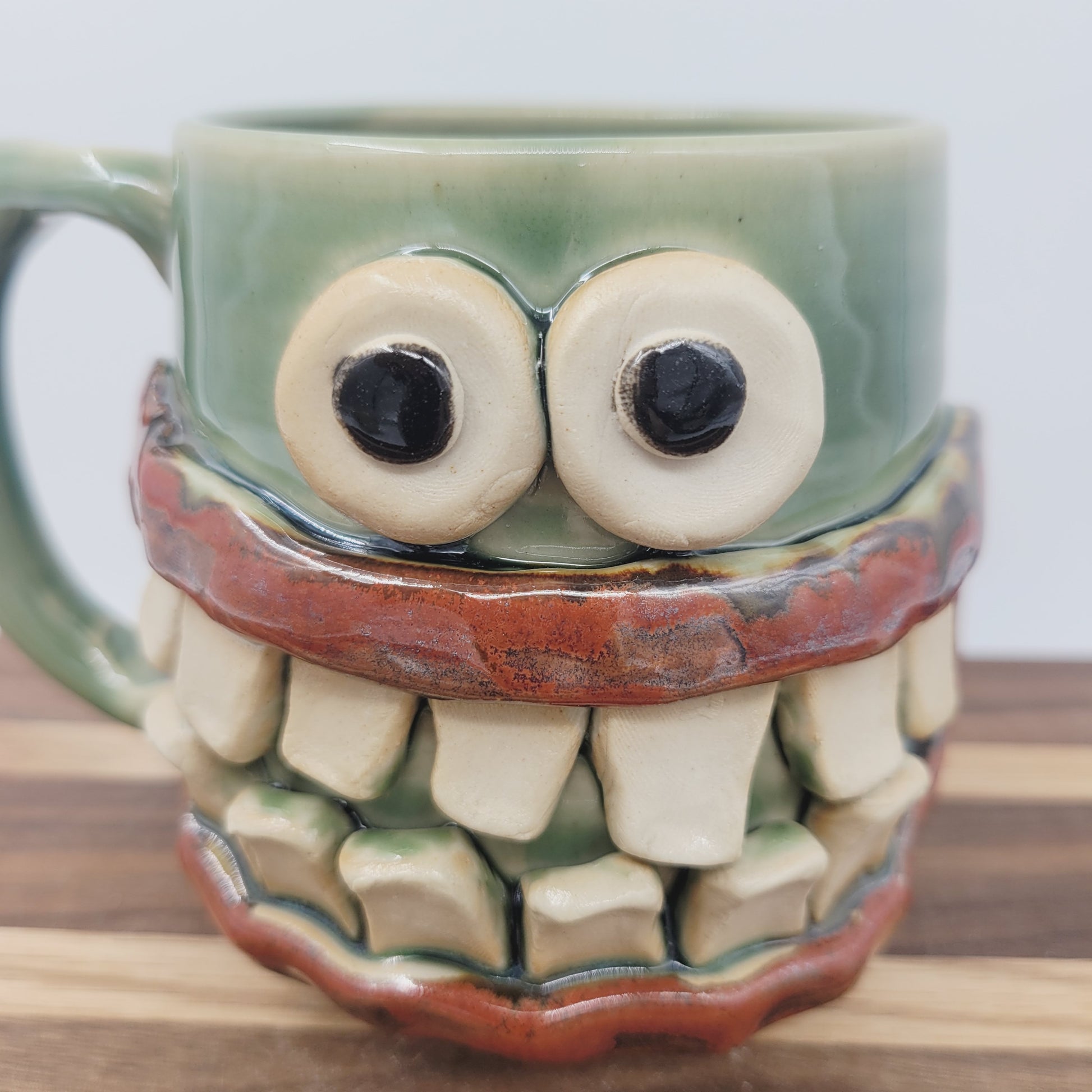 Green Smiley Face Coffee Cup | Introvert Face Mug | Handmade Stoneware Pottery