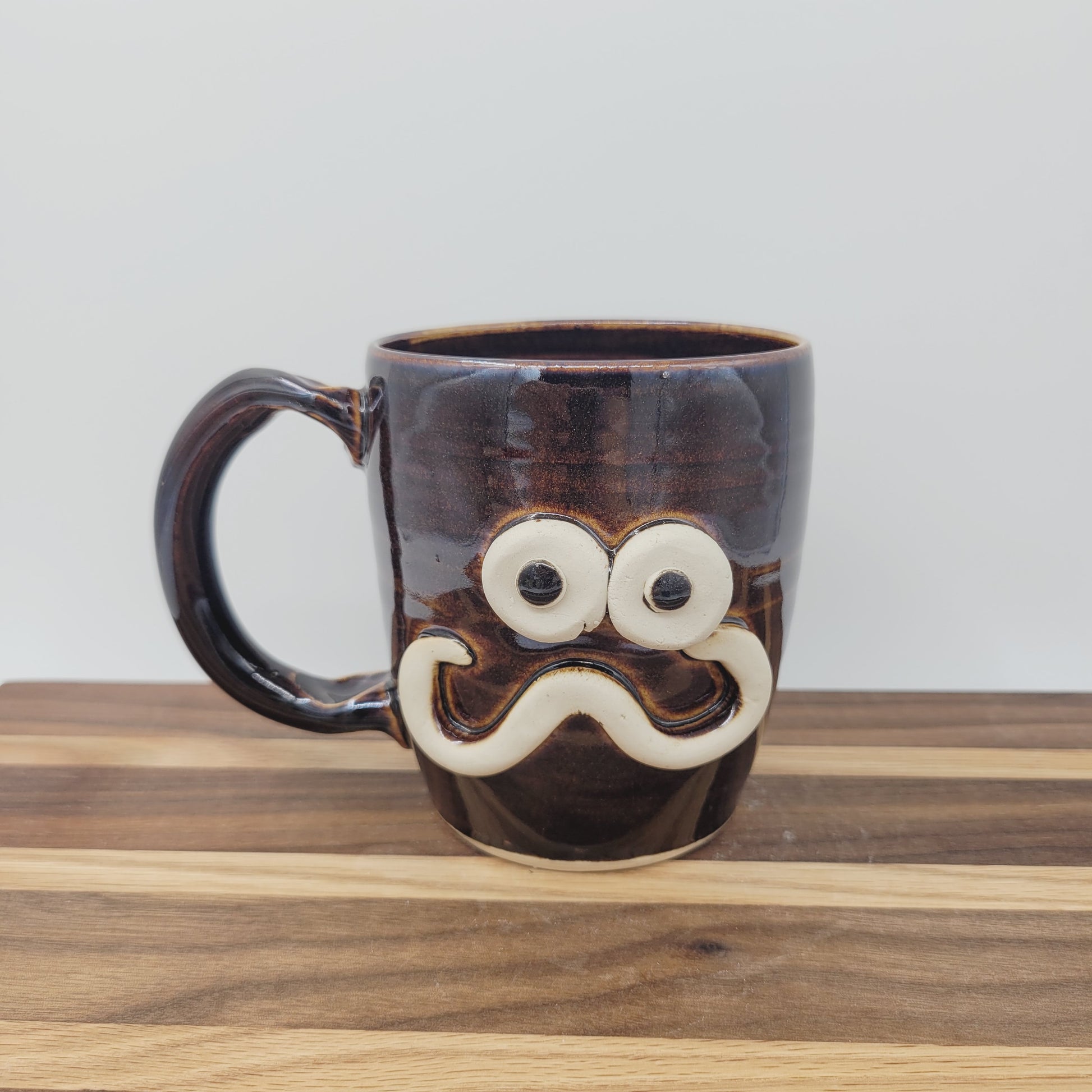 Handlebar Mustache Mug | Funny Over The Hill Man's Pottery Coffee Cup | Nelson Studio Ug Chug | Chocolate Brown Black