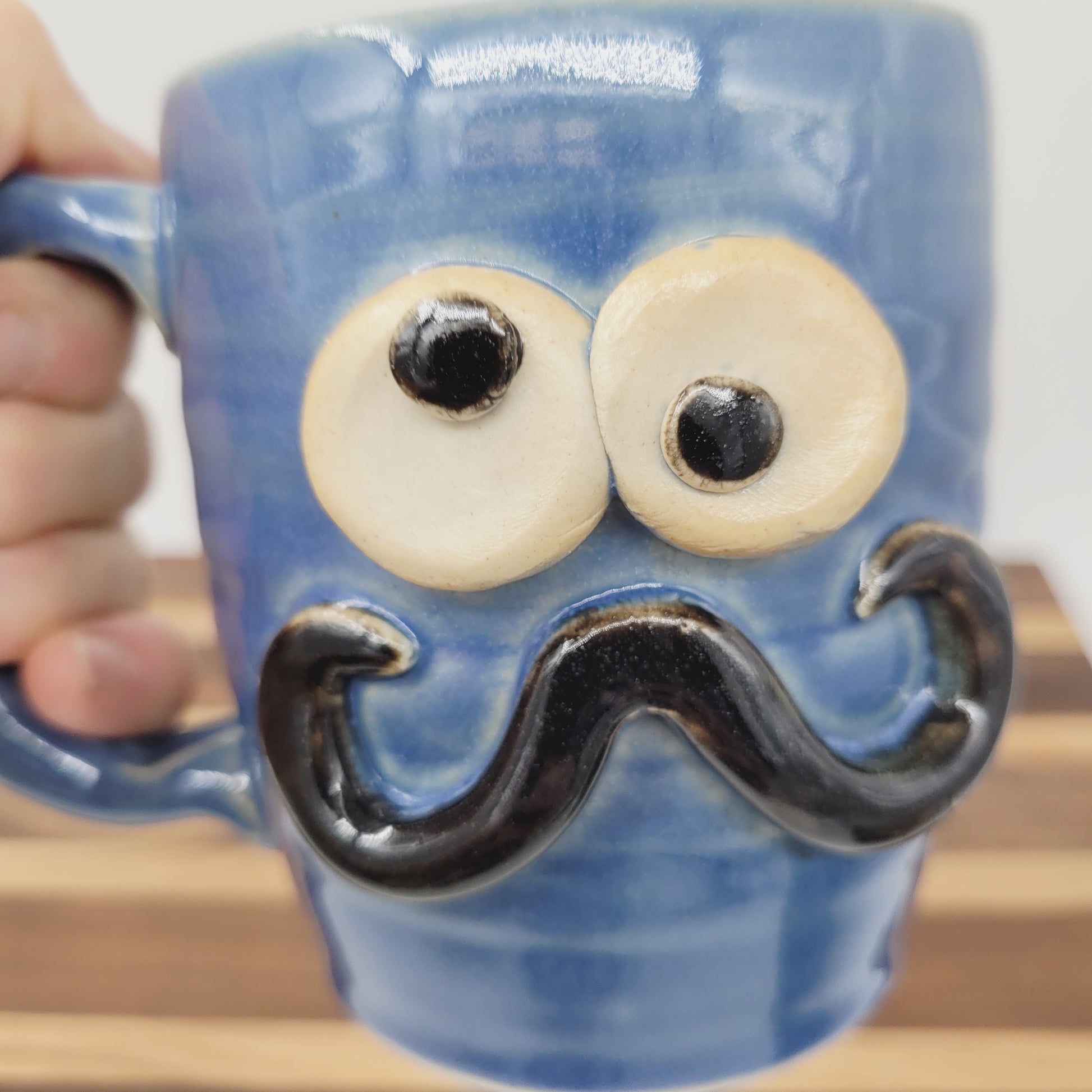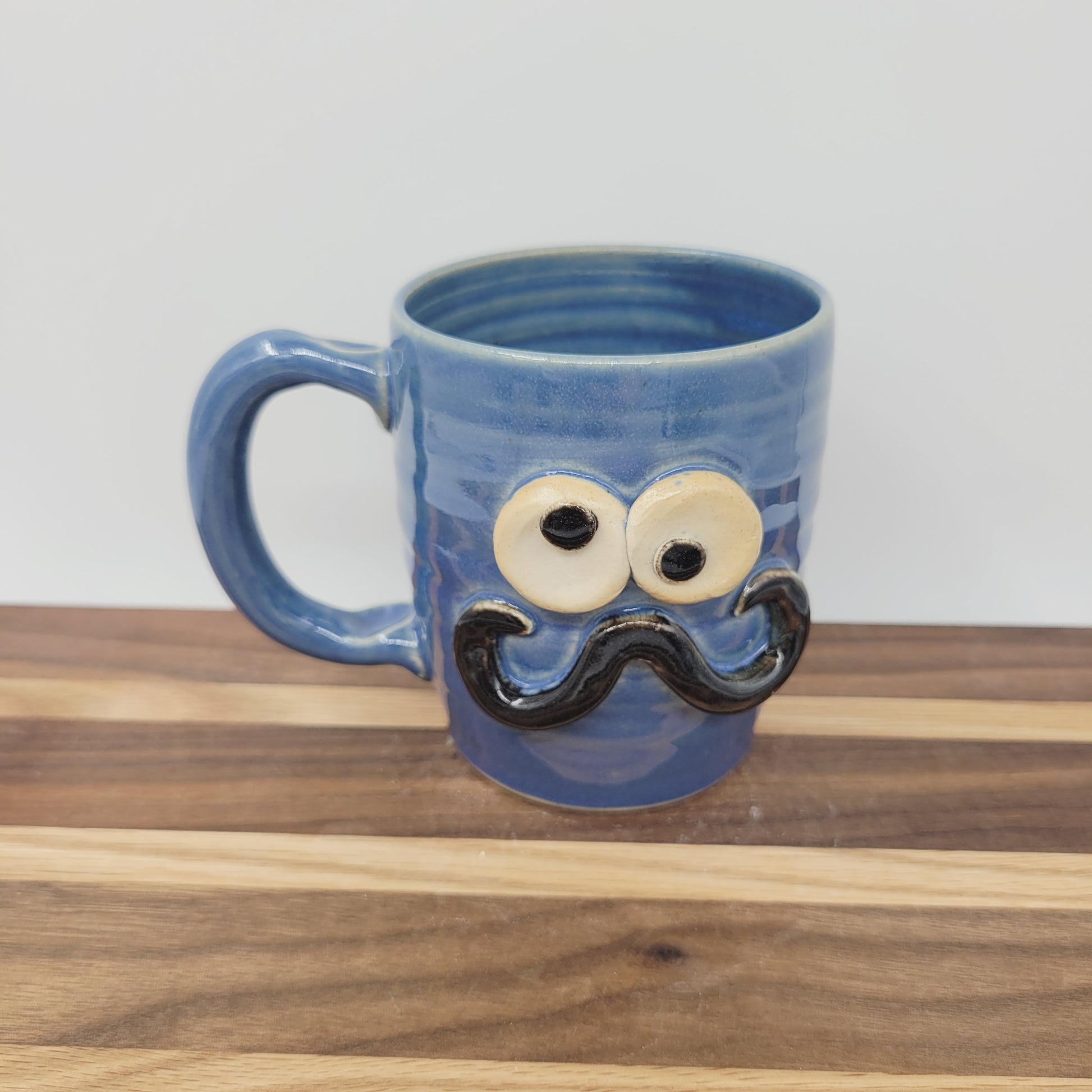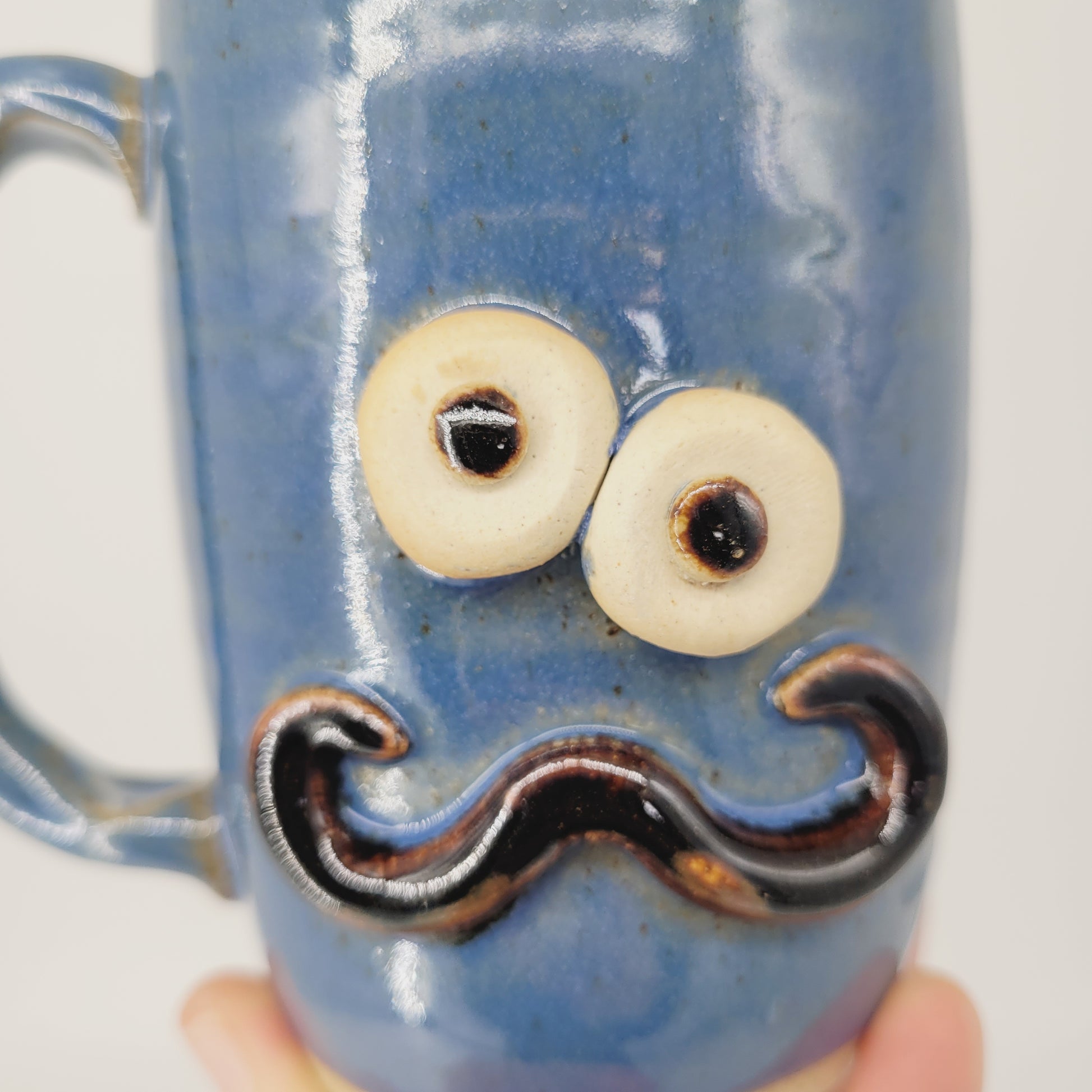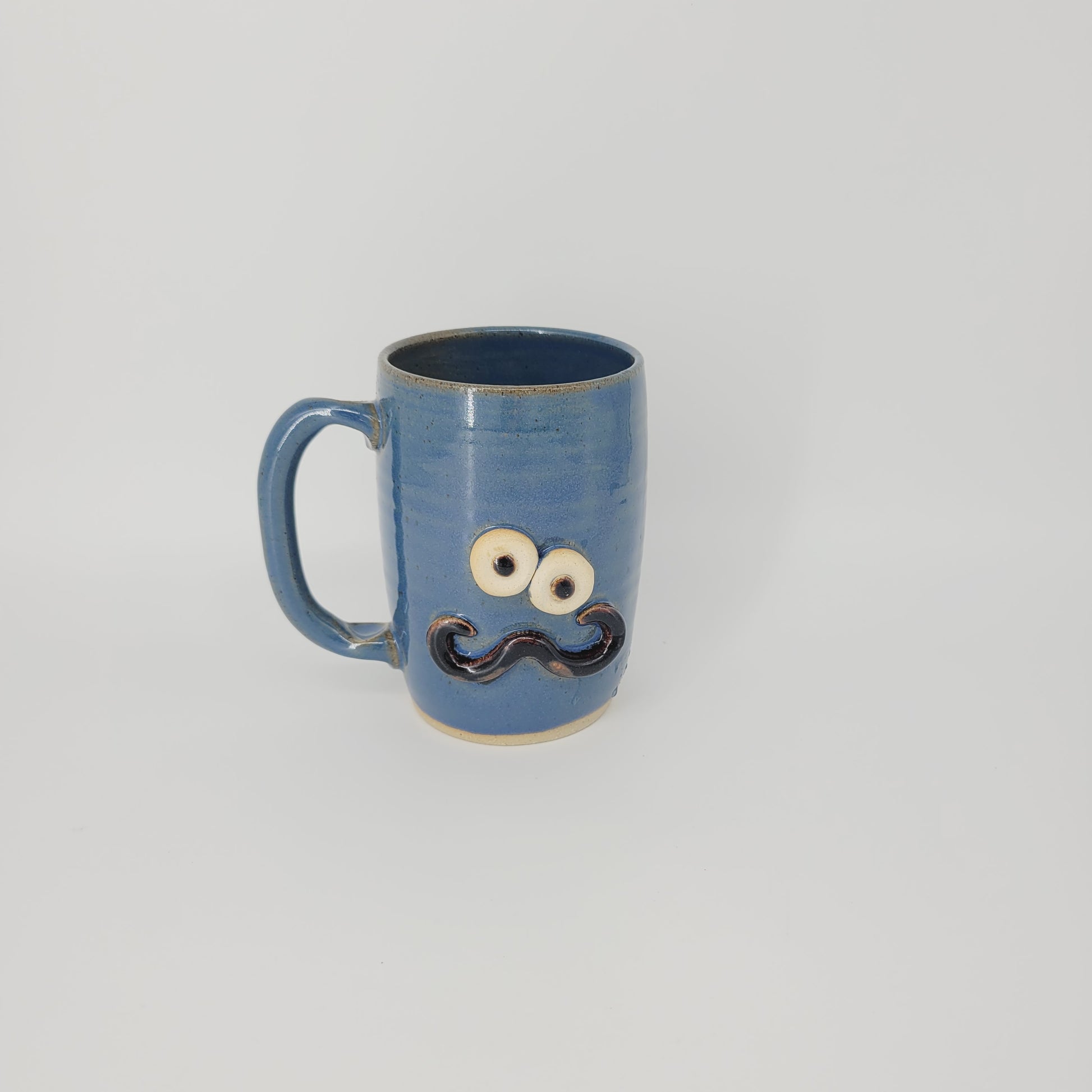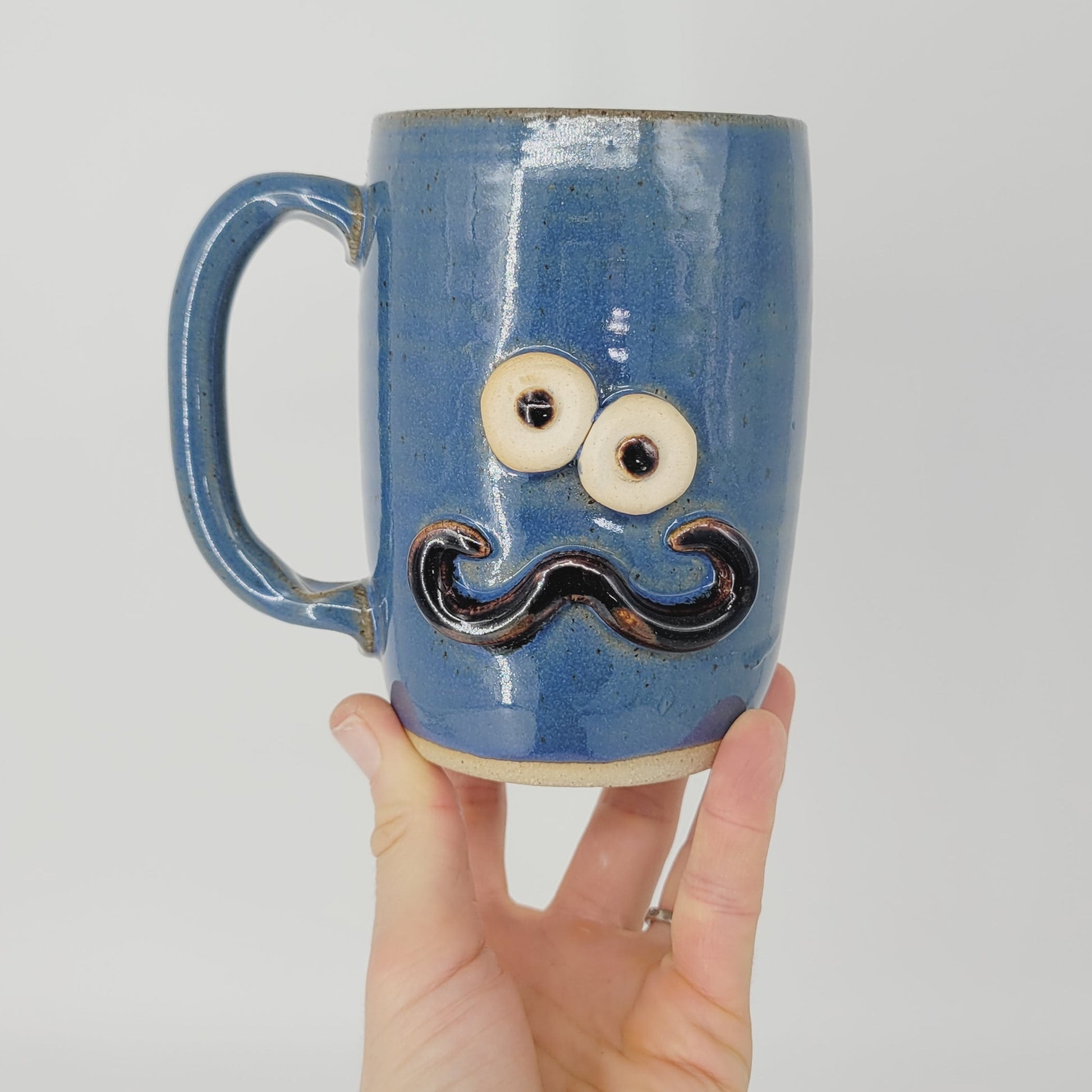 Handlebar Mustache Mug | Handcrafted Man's Pottery Coffee Cup | Microwave Dishwasher Safe | Blue