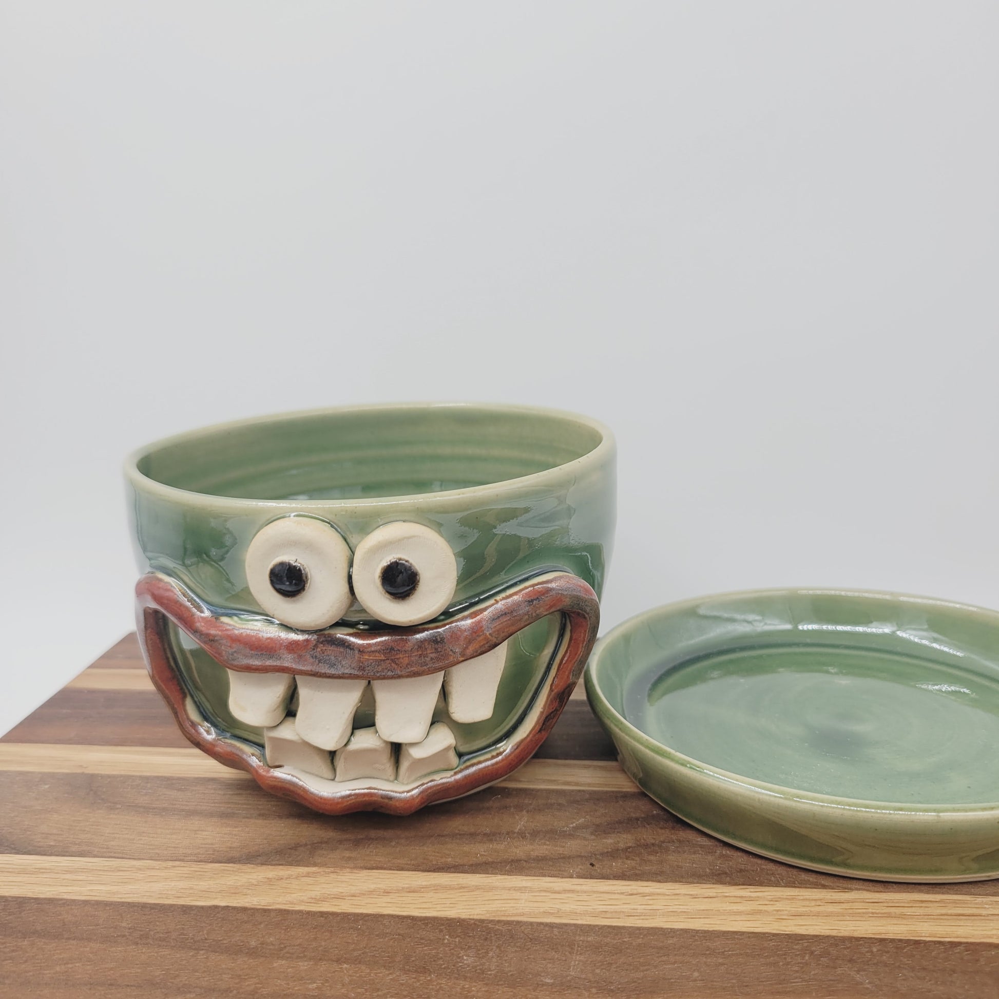 Handmade Pottery Face Planter | Cheerful Gardening Container Pot| Green | Nelson Studio Ug Chug