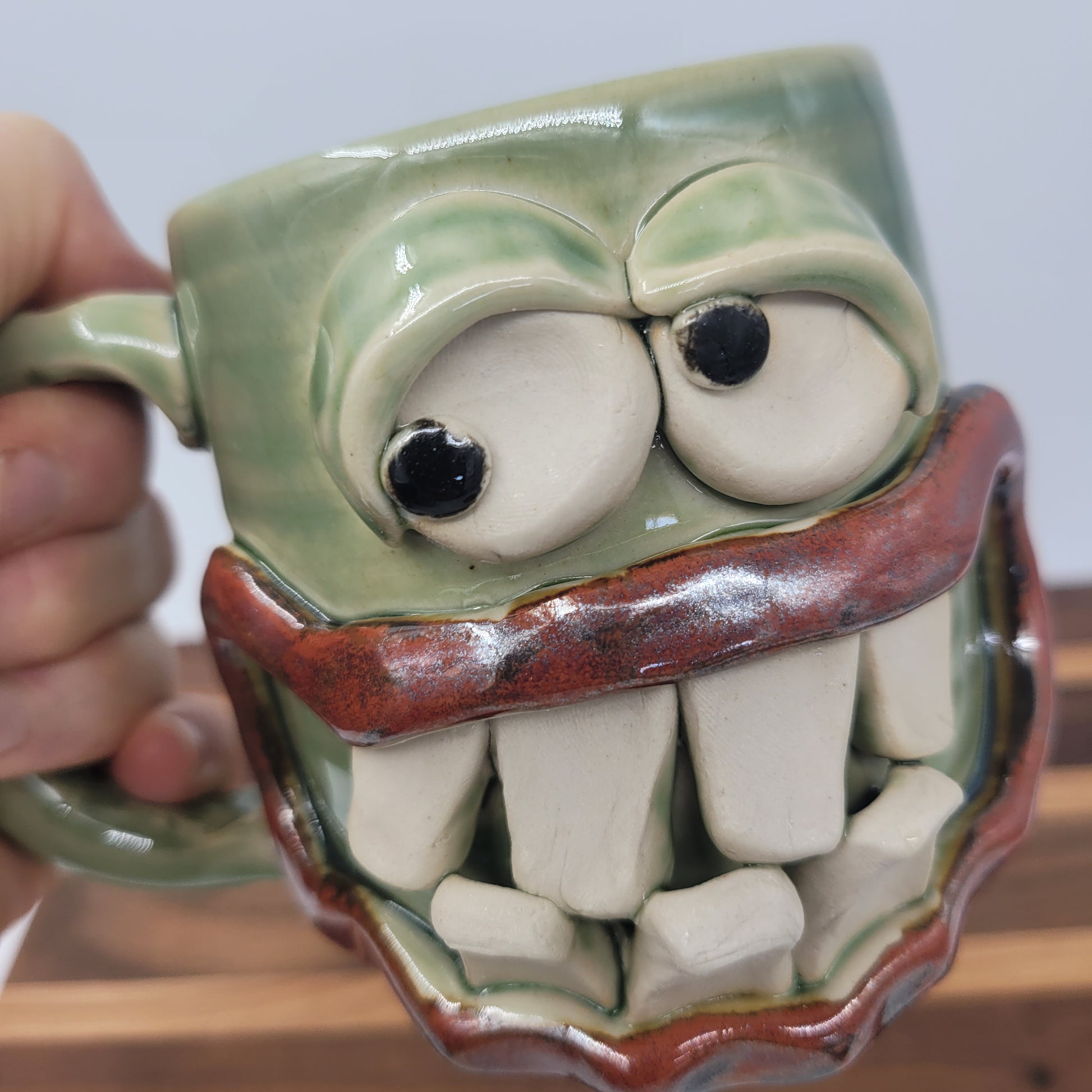 If you're someone who enjoys a good laugh with your coffee, then this mug is for you! First thrown on the pottery wheel, he features a goofy, grinning smiley face that is sure to wake you up! He's also microwave and dishwasher safe and comes packaged in a convenient gift box.