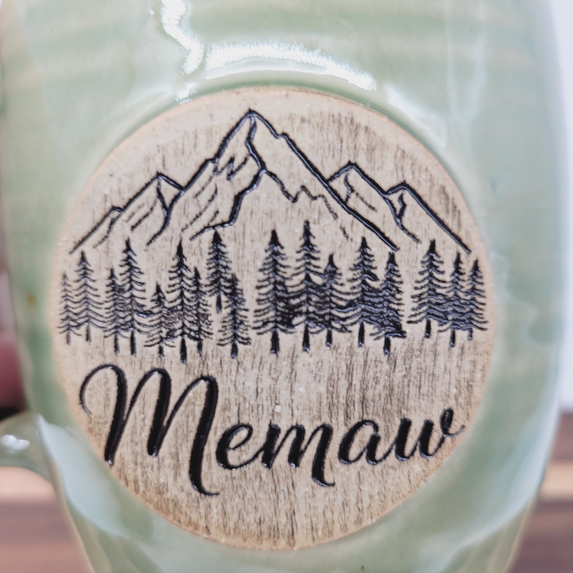 Give your Memaw a daily reminder of your love with a handmade coffee cup! If you know and love a Nana - or are one yourself - this mountain-themed grandparent mug makes a great gift! It is handmade from stoneware pottery and features a custom stamp design created at our studio and transferred into clay. Great for sipping morning coffee or enjoying afternoon tea, this mug is microwave and dishwasher safe and is a wonderful daily reminder of your care.