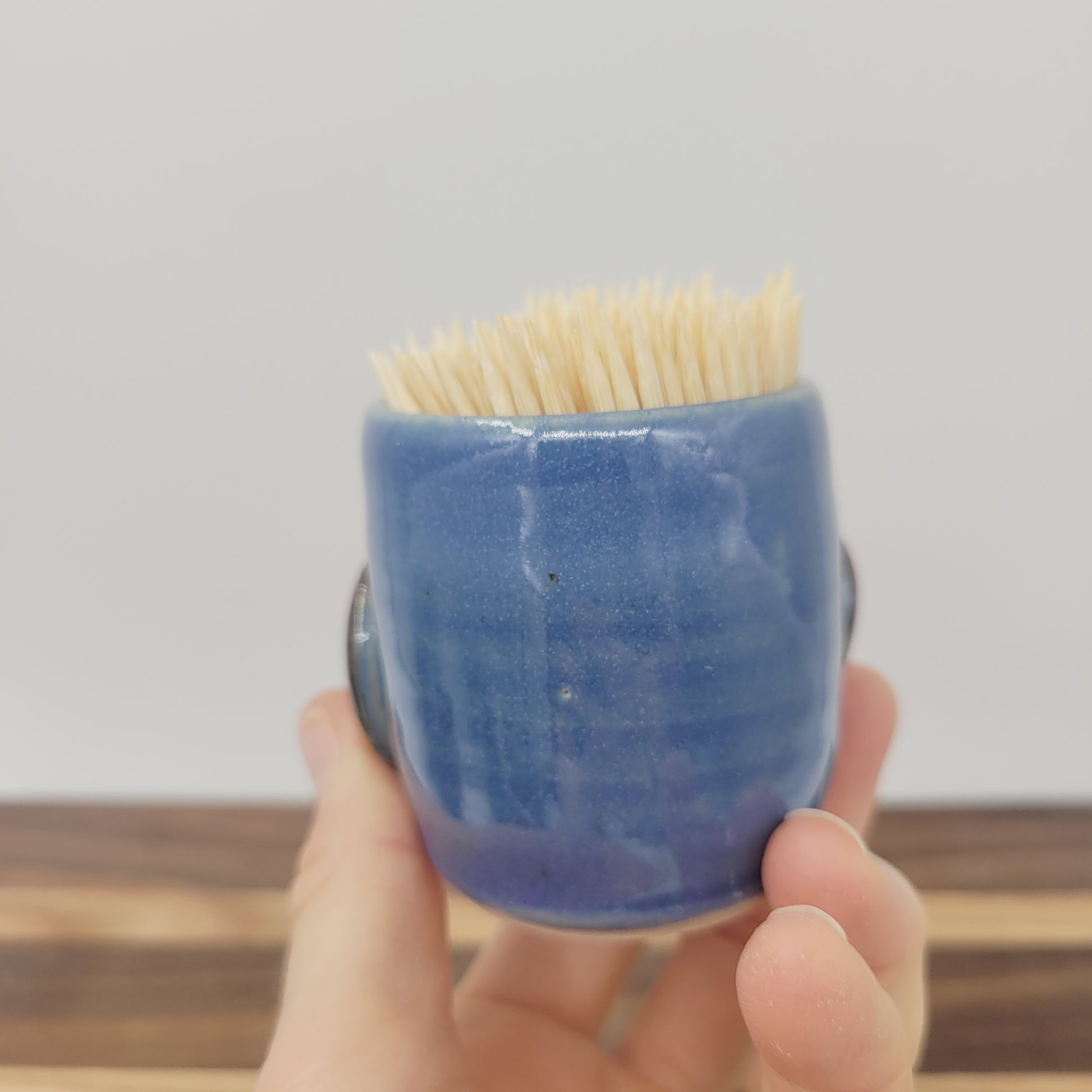 Mini Glass | Handmade Stoneware Toothpick Holder | Blue Paperclip Cup