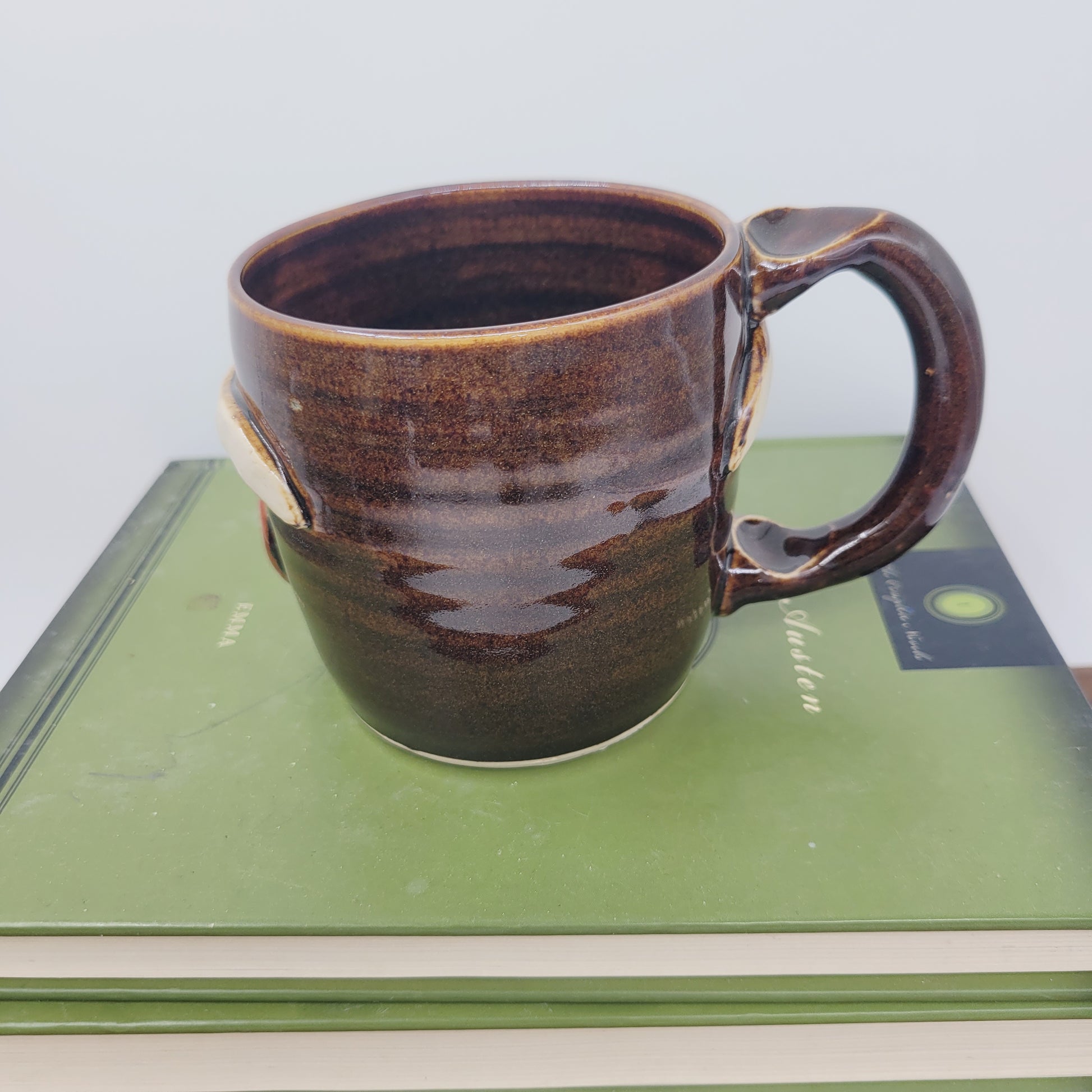 Jared also loves to serve beverages and can hold whatever drink you prefer. He is a one of a kind piece of pottery, completely handmade from cone 10 stoneware. He was first thrown on the pottery wheel, and his eyes and features were made and added by hand. He is very durable and is even safe to use in the MICROWAVE and DISHWASHER. Jared is an Ug-Chug Mug, so he's stamped with the Ug-Chug logo and his year.