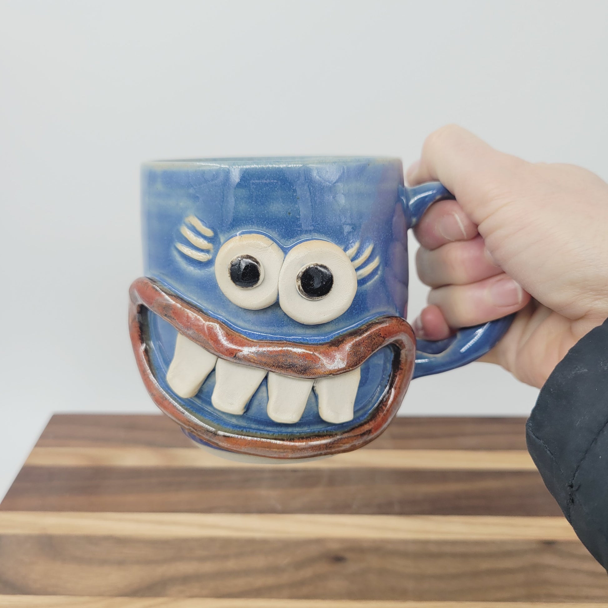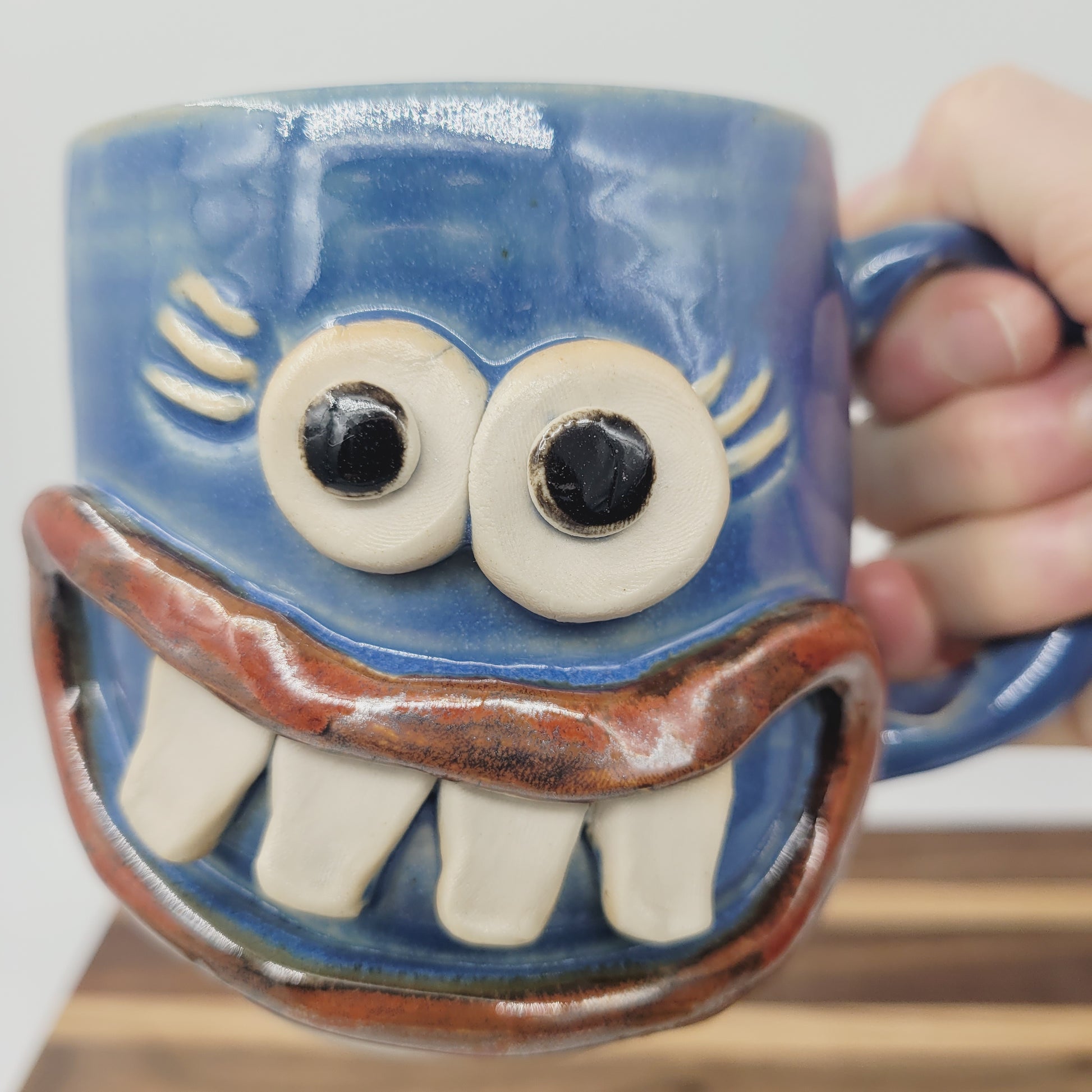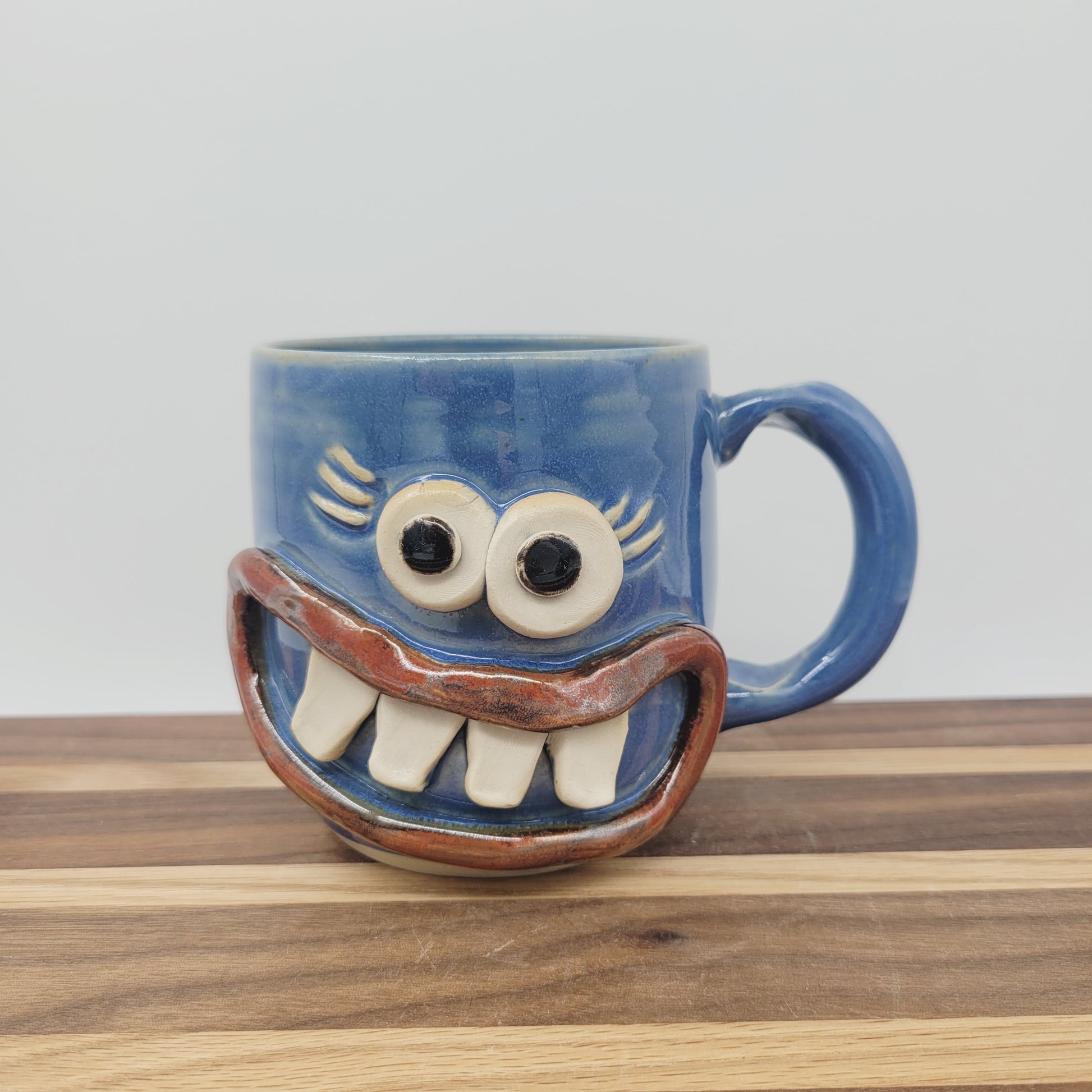 Becky and Hank are also fantastic beverage holders and are wonderful for coffee, tea, and even cold drinks. They are a one of a kind pieces, both completely handmade from cone 10 stoneware. They were first thrown on the pottery wheel, and then their features were added by hand. They are very durable and are microwave and dishwasher safe.