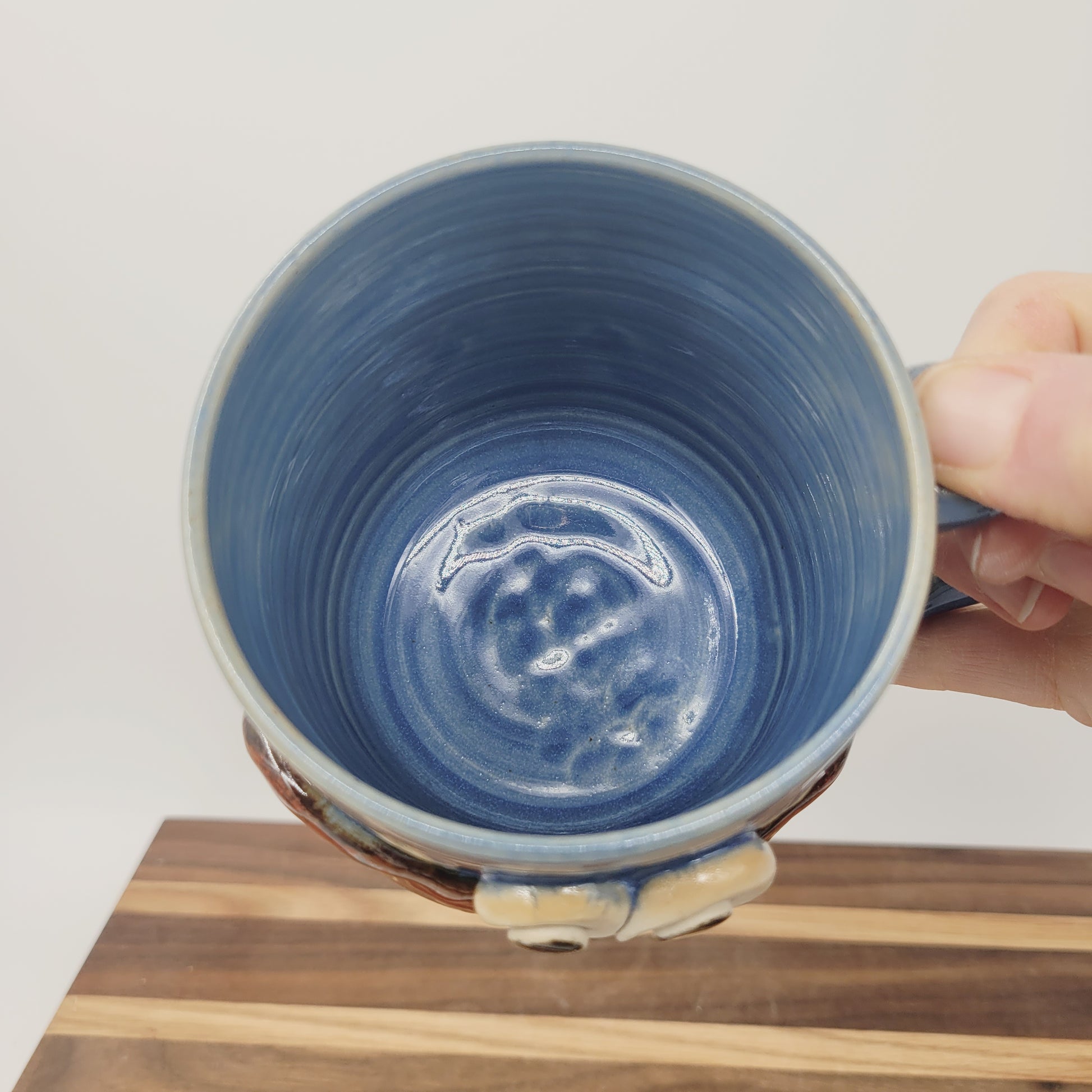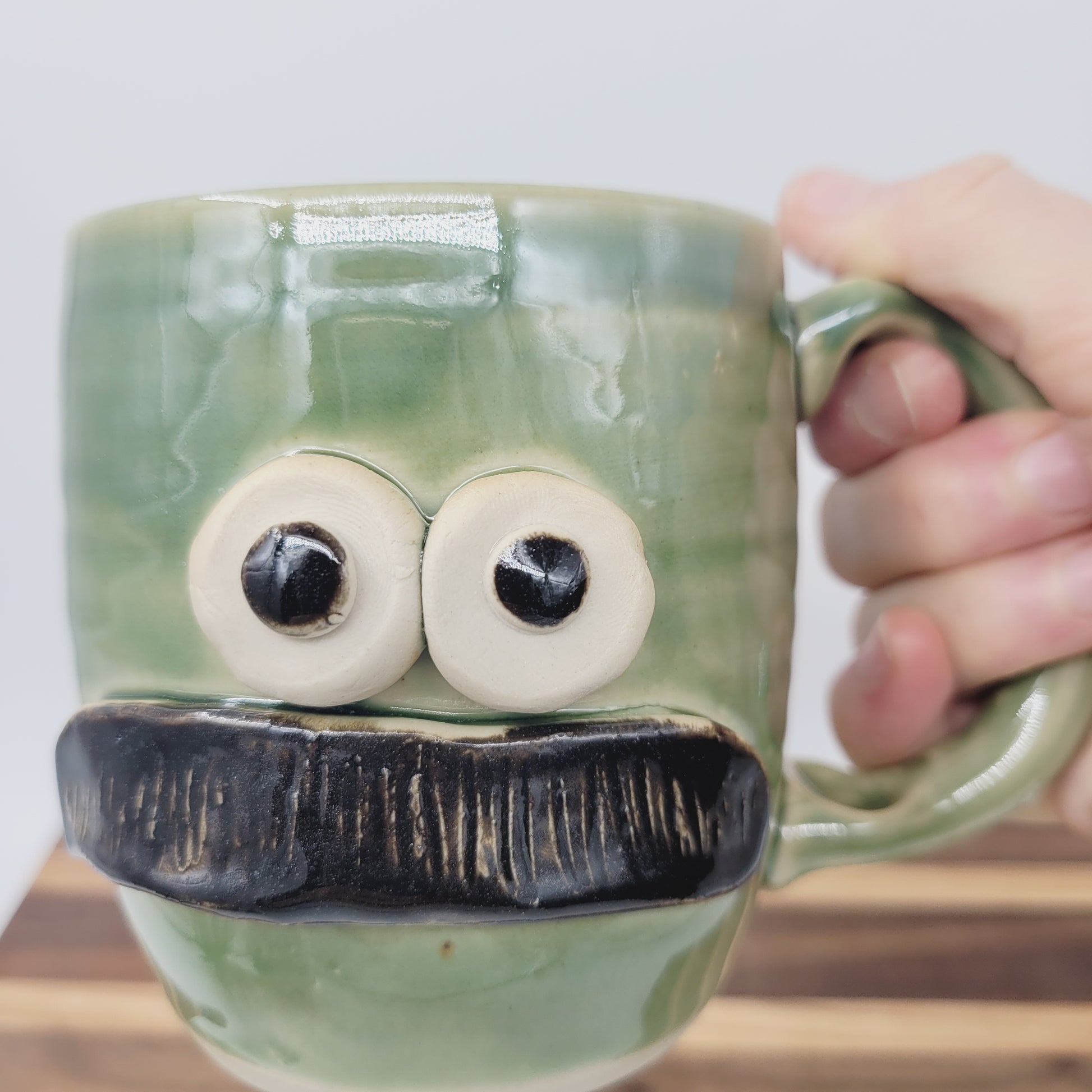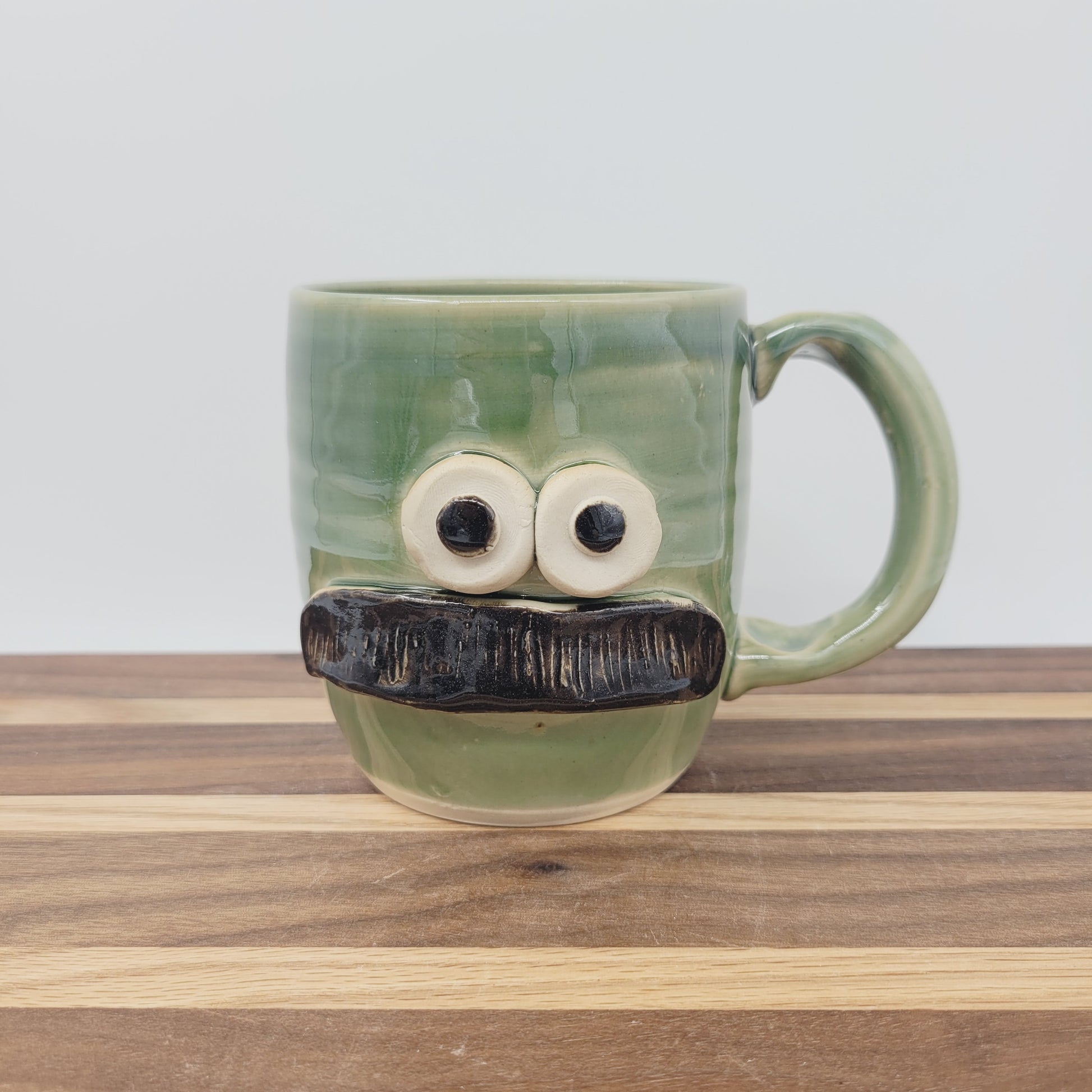 Becky and Hank are also fantastic beverage holders and are wonderful for coffee, tea, and even cold drinks. They are a one of a kind pieces, both completely handmade from cone 10 stoneware. They were first thrown on the pottery wheel, and then their features were added by hand. They are very durable and are microwave and dishwasher safe.