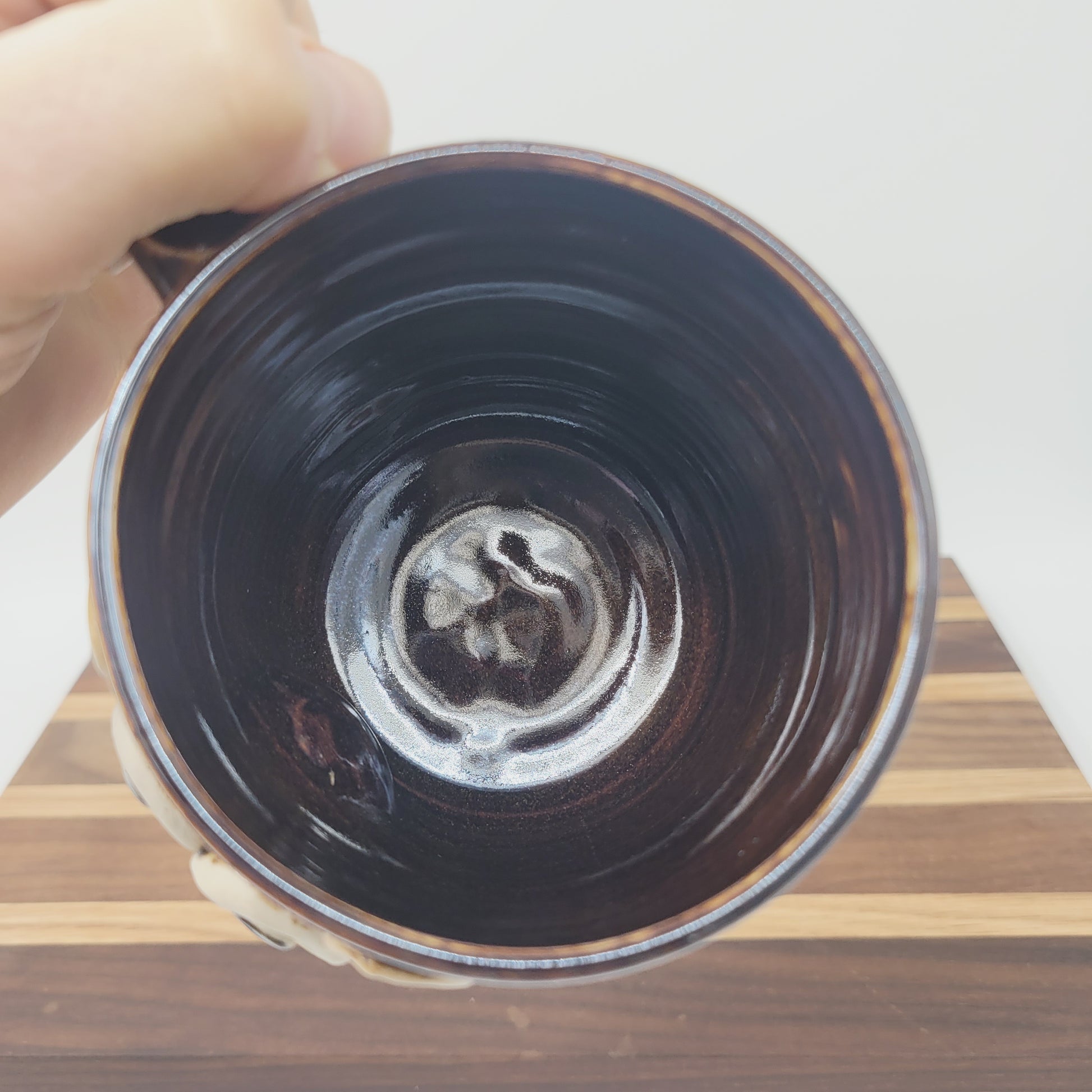 Nick was first thrown on the pottery wheel, and his eyes and single tooth were made and added by hand. He is made from stoneware and high-fired for durability and is MICROWAVE and DISHWASHER SAFE. Nick is an Ug-Chug Mug, so he's stamped with the Ug-Chug logo and his year.