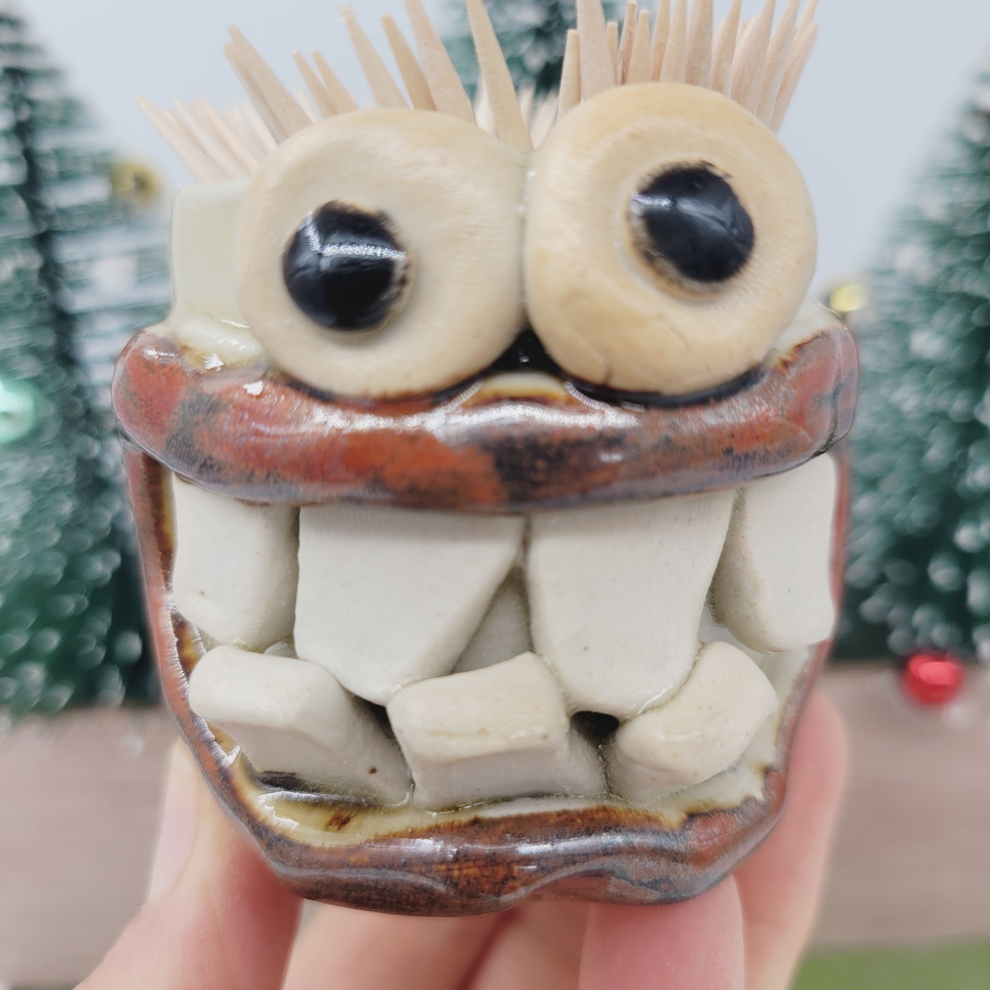 This toothpick holder is definitely all smiles! Featuring a toothy grin, it is sure to make you chuckle every time you reach for a toothpick! He is also perfect for holding paperclips, tiny treasures, or even tiny sips!