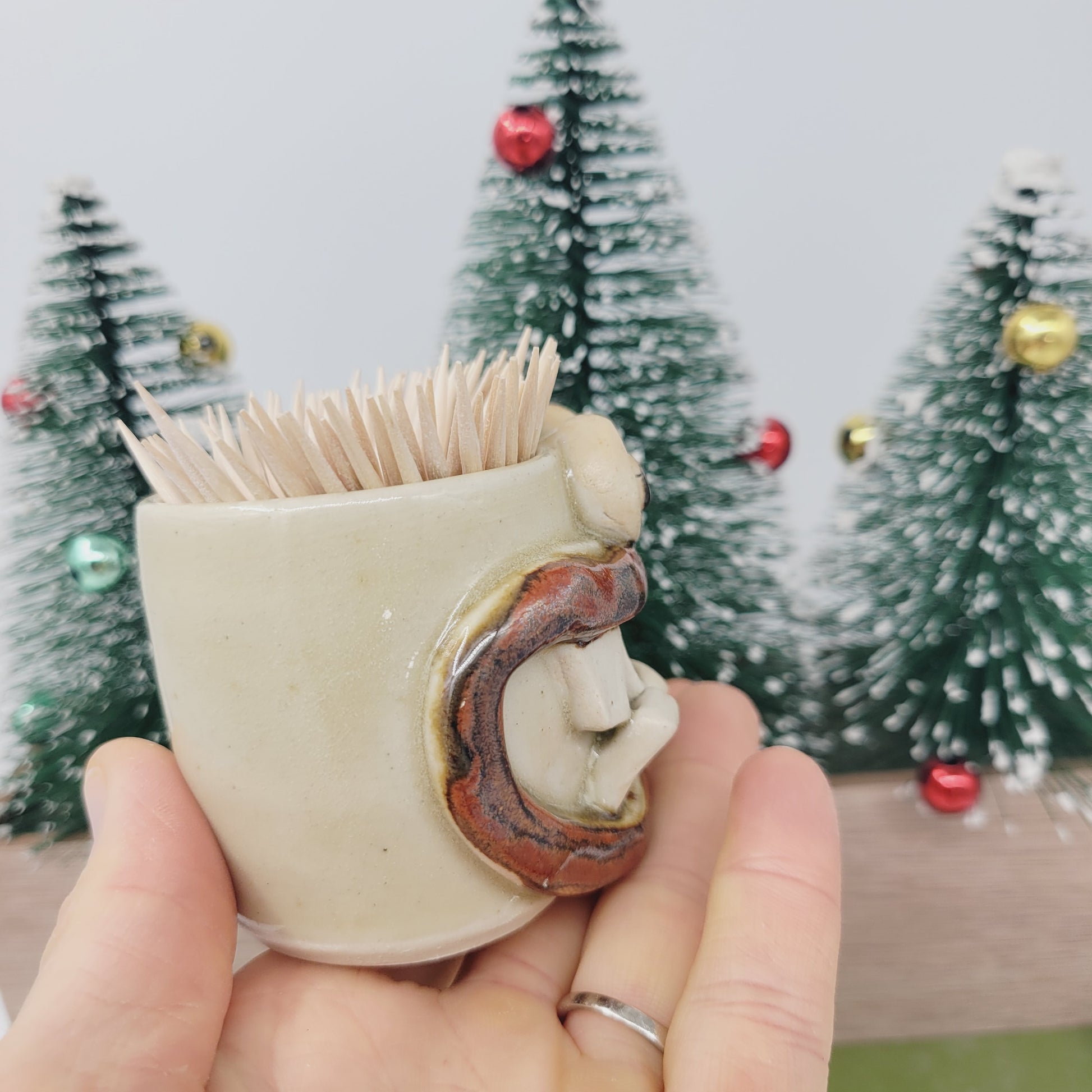 Toothpick Holder | Paperclip Cup | Funny Face Mini Pottery | Cream | Nelson Studio Ug Chug (Copy)