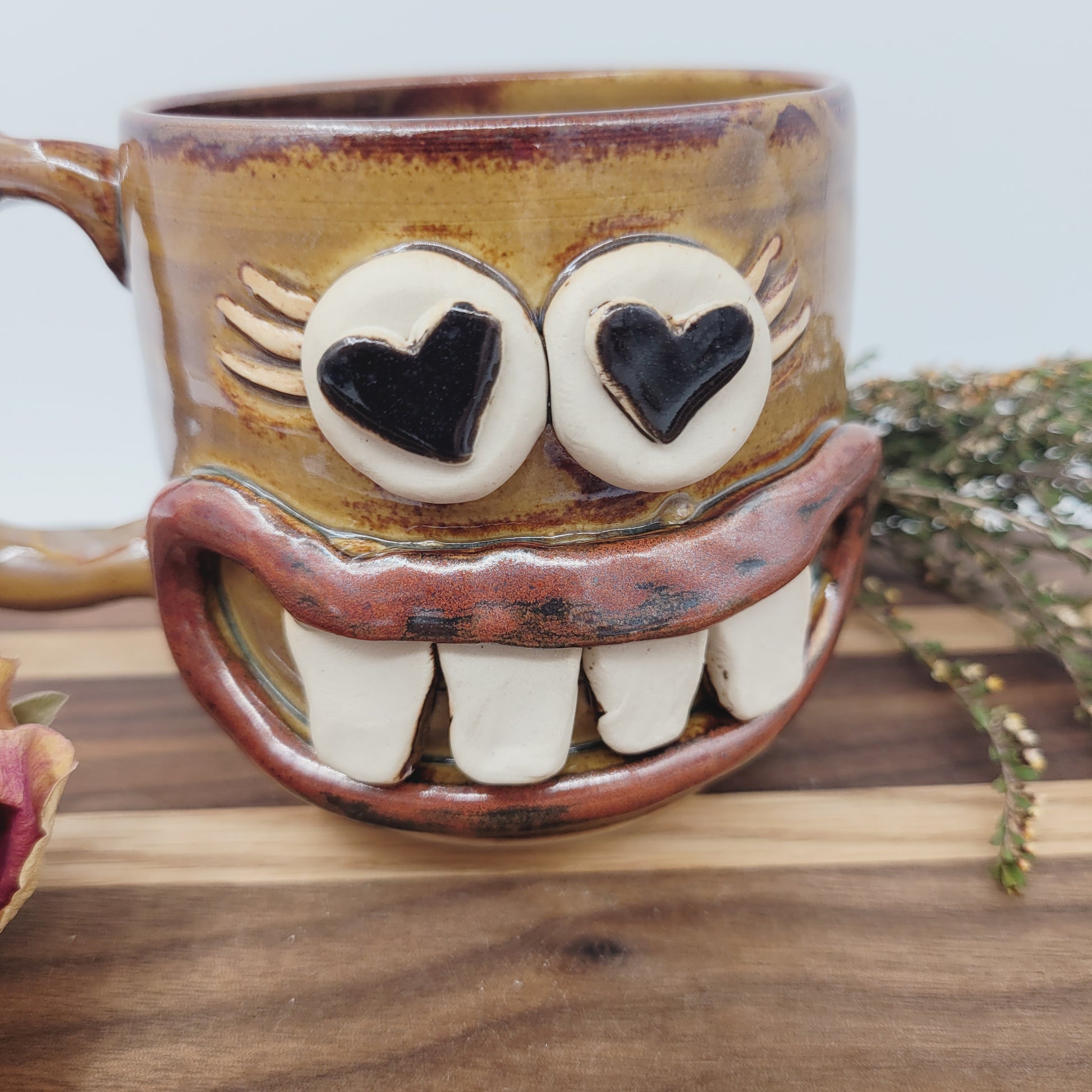 Add a sense of humor to your Valentine's Day with our Love Mug! Her heart eyes and flirty eyelashes make this ceramic stoneware coffee cup the perfect way to start your day. She also makes a fantastic Valentine's Day gift for anyone who loves a good laugh!