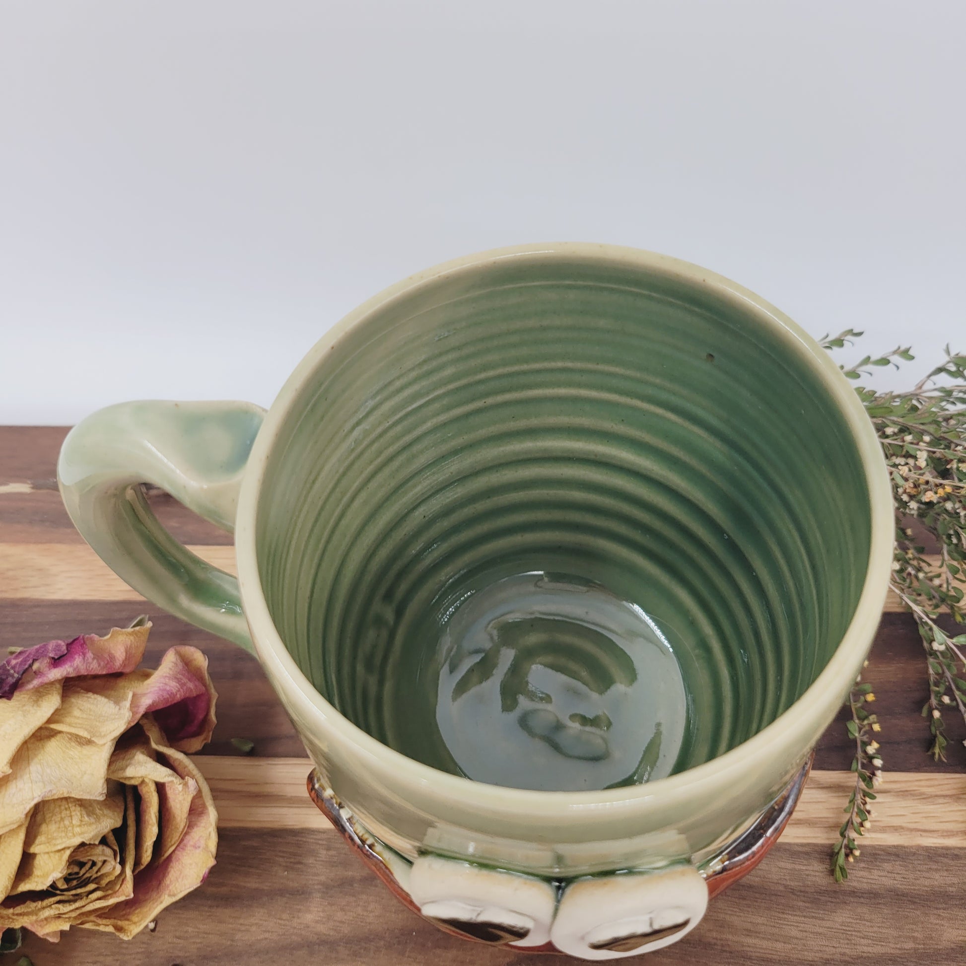 Shelly also adores serving beverages, and she's great at it. She is made from cone 10 stoneware, so she's very durable and is even safe use in the MICROWAVE and DISHWASHER. She is an Ug-Chug Mug, so she's stamped with the Ug-Chug logo and her year.