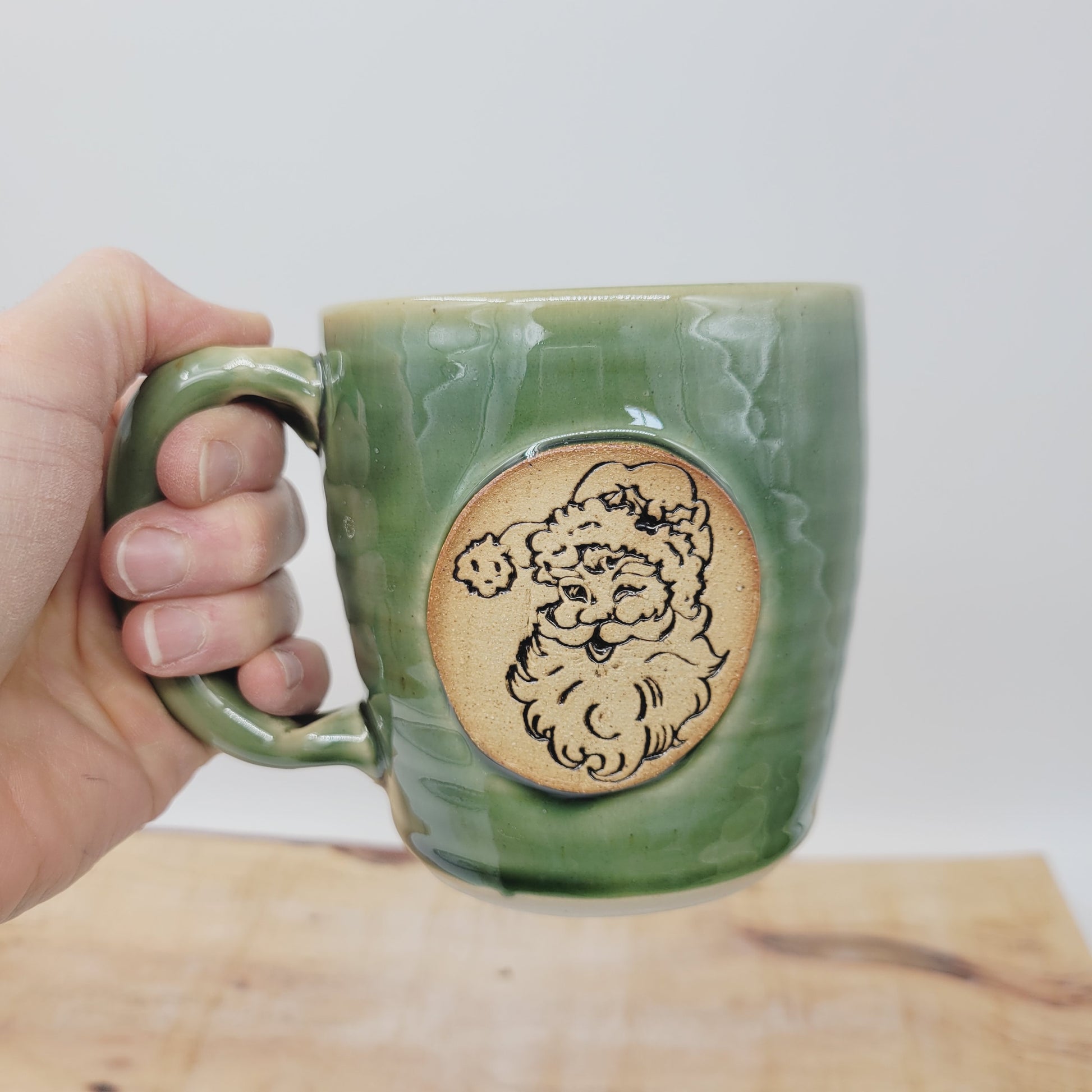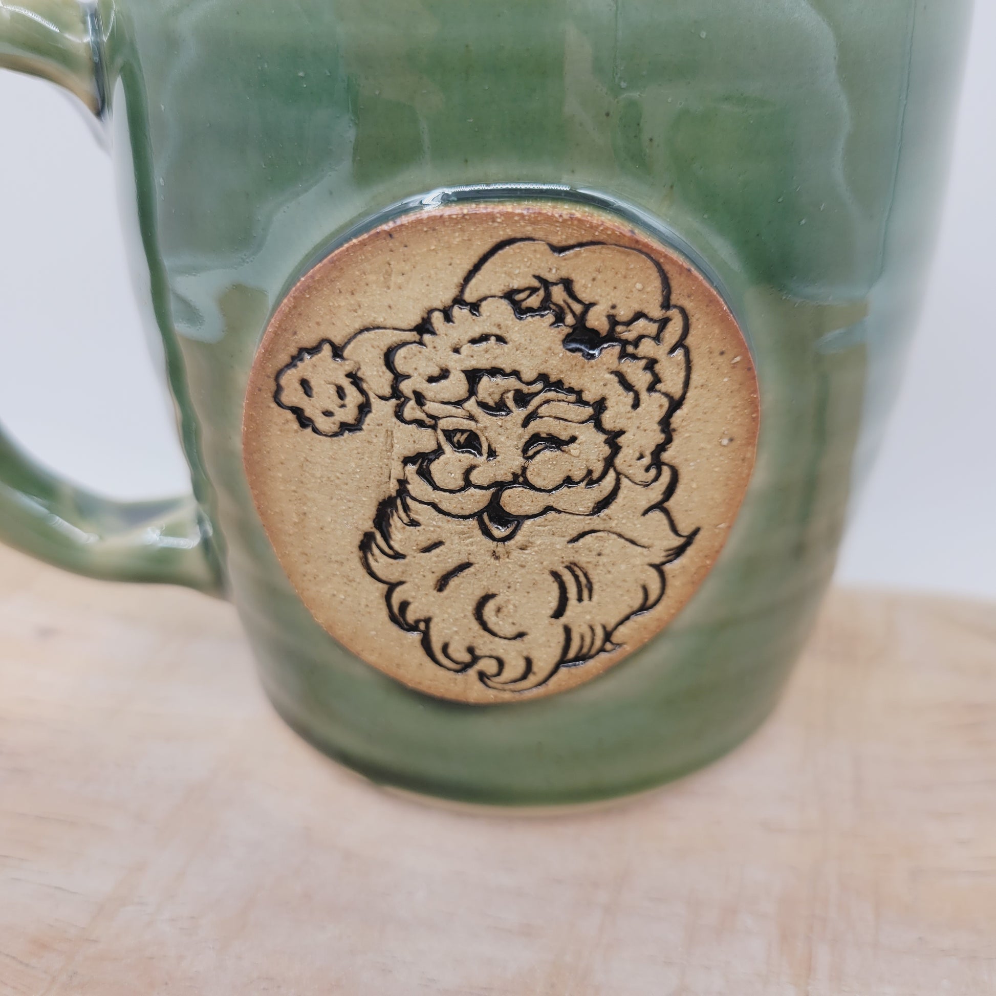 Vintage Santa Mug | Christmas Morning Coffee Cup | Old Fashioned Hot Chocolate Pottery Mug | Green