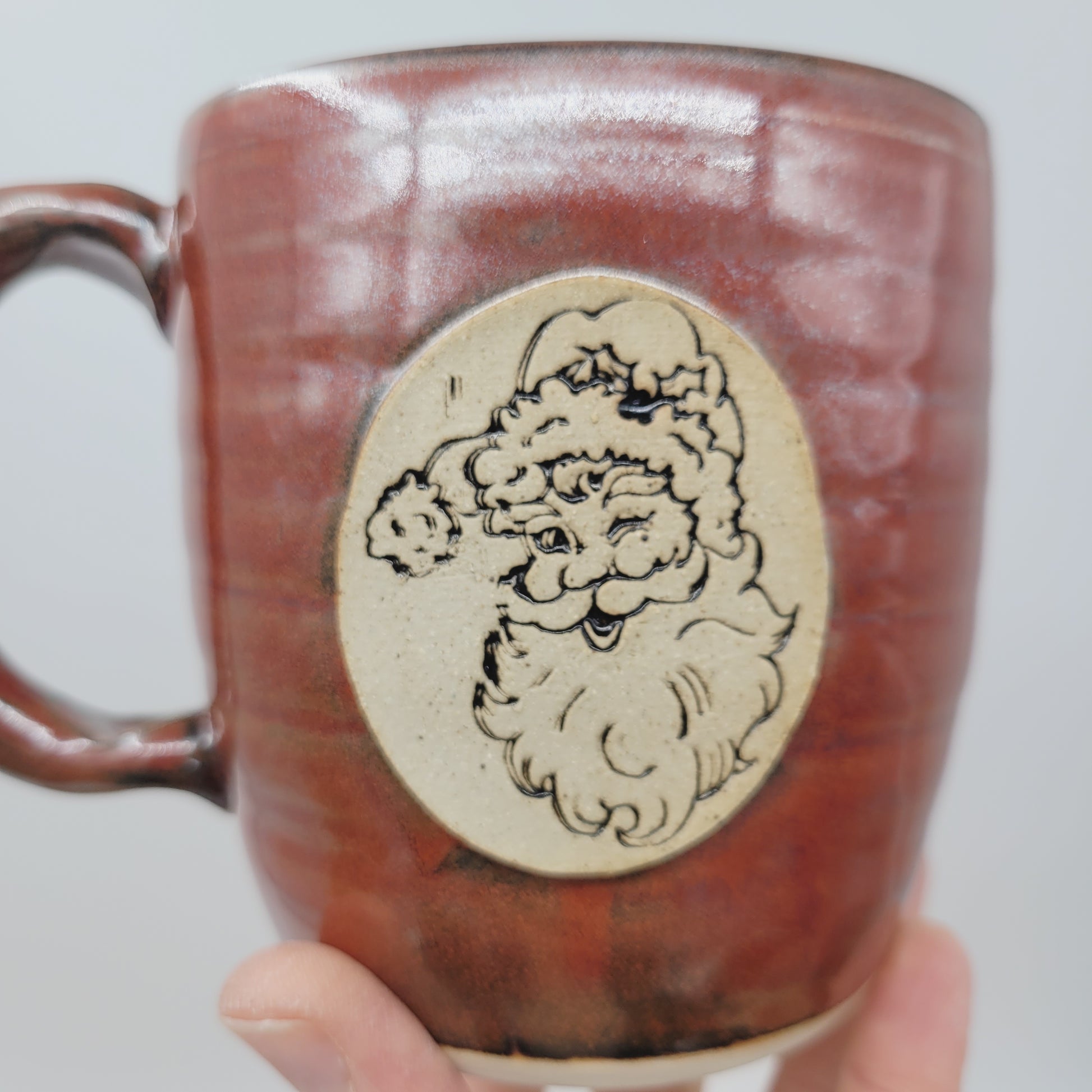 Vintage Santa Mug | Christmas Morning Coffee Cup | Old Fashioned Hot Chocolate Pottery Mug | Red | Extra Large 20 Ounces