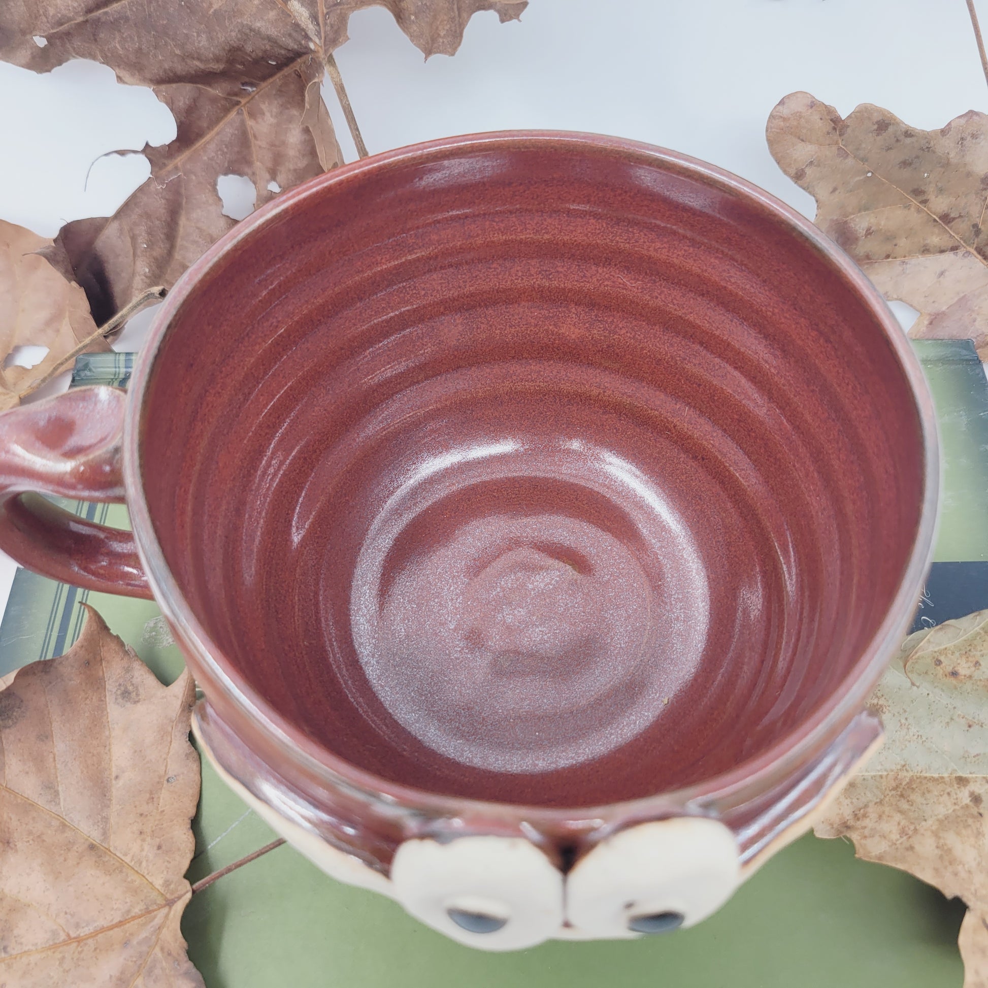 Despite his, shall we say, 'enthusiasm', Joe remains an excellent soup mug and is great for everything from chili to chicken noodle soup. Joe is made from cone 10 stoneware, so he's very durable and is even safe to use in the microwave and dishwasher.